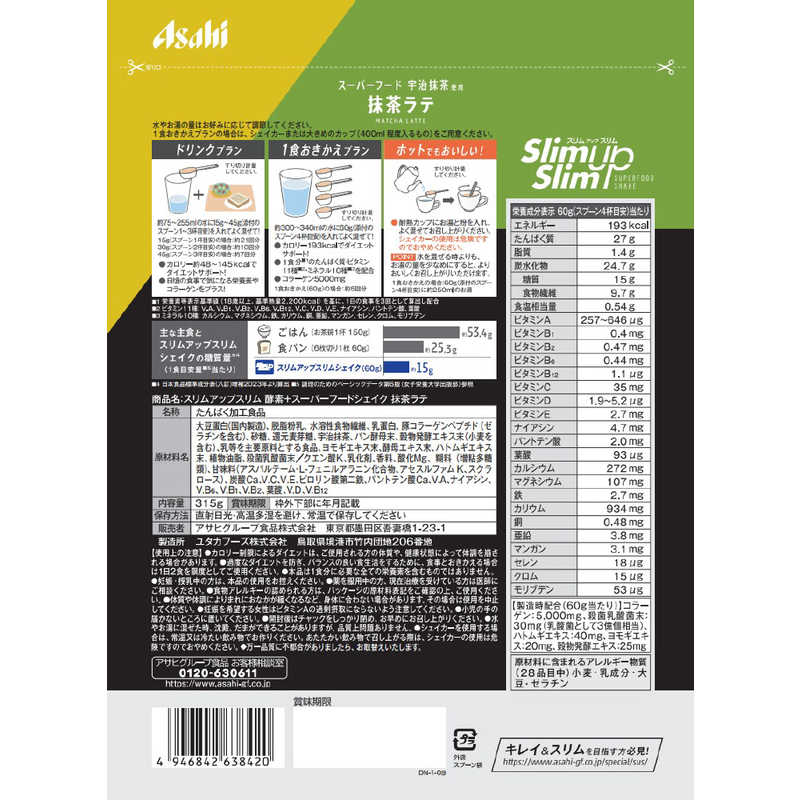 商品名 : アサヒグループ食品 Slimup Slim(スリムアップスリム) 酵素+スーパーフード 抹茶ラテ 315g 美容・ダイエット
