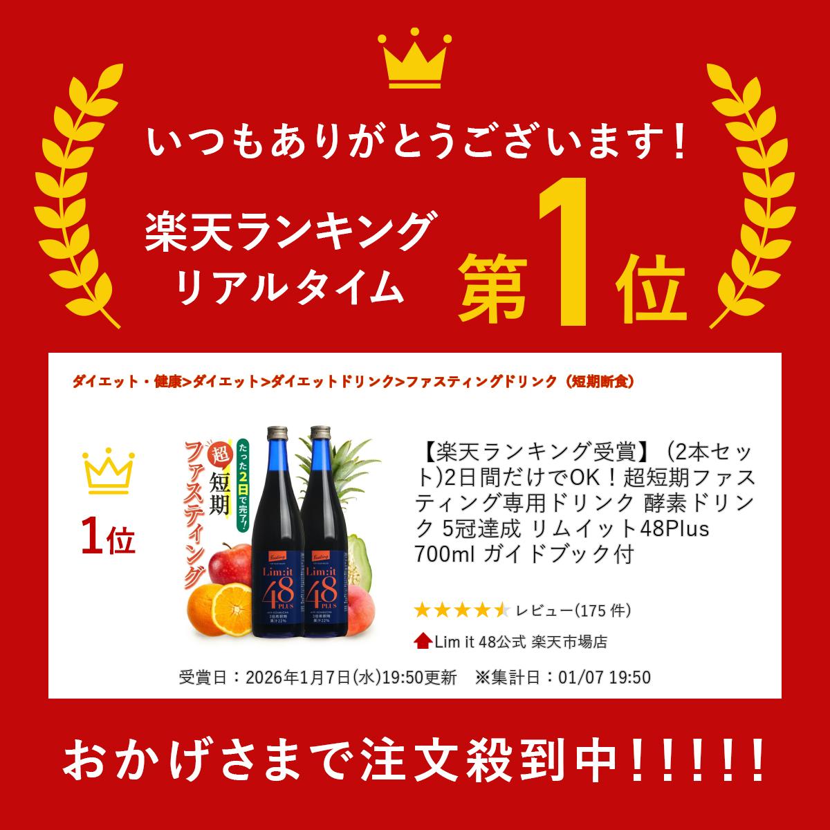 商品名 : (2本セット)2日間だけでOK!超短期ファスティング専用ドリンク 酵素ドリンク 5冠達成 リムイット48Plus 700ml ガイドブック付 断食 美味しい ファスティング