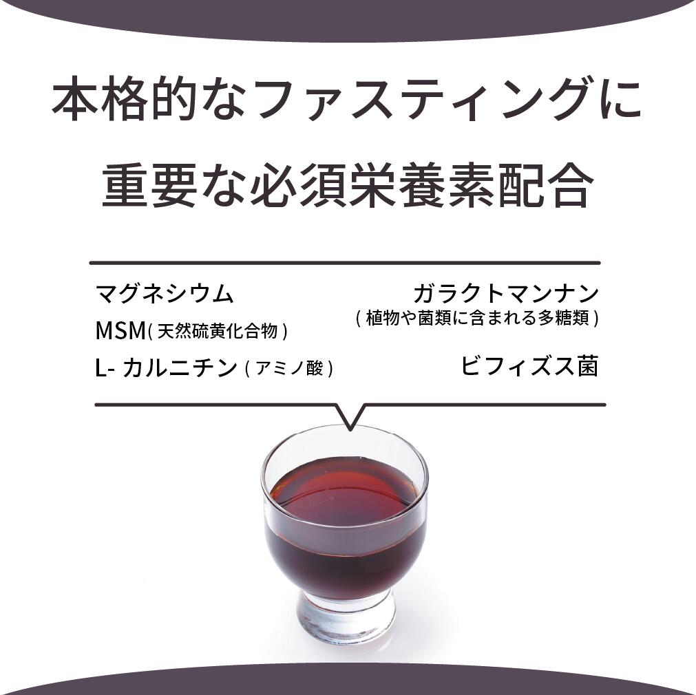 ファスティング・ヴィンテージの特徴 ・大自然の野草、新鮮な野菜、果物など約60種類の原材料 ・50種類以上の乳酸菌や酵母の力で自然発酵 ・マグネシウム、L-カルニチン、MSM(硫黄)、ビフィズス菌配合 ・ 防腐剤、合成保存料等不使用 ・水やフルーツ果汁などで調整していません 保存方法 直射日光を避け、常温で保存してください。(開封後要冷蔵) お召し上がりの目安 300ml 1本=朝・昼・夜の置き換えでファスティング1日分 原材料名 ノニ(沖縄産・サモア産) 岩石抽出ミネラル 原材料 糖類(蔗糖、黒糖、オリゴ糖)、 野草類(ドクダミ、オオバコの葉、ハトムギ、エビスグサ、ヨモギ、スギナ、アカザ、イチョ ウの葉、カンゾウ、スイカズラ、 マタタビの木、クコの葉、ツルナ、ナルコユリ、アマチャヅル、ウコン、オトギリソウ、カ ワラケツメイ、カキドオシ、ケイ(桂)、 エゾウコギ、ツユクサ、ハブソウ、マツ葉、キダチアロエ、アカメガシワ、ウコギ、クコの 実、クマザサ、タンポポ、ナンテンの葉、コナラ、ツチアケビ)、 野菜類(キャベツ、モヤシ、ブロッコリー、キュウリ、玉ネギ、大根、人参、馬鈴薯、レンコ ン、 ゴボウ、山芋、椎茸、舞茸、ホウレン草、ナタ豆、パセリ、トマト、ニラ、ニンニク、小松菜、 カブ)、 果物類(パパイヤ、パイナップル、リンゴ、レモン)、 昆布エキス、貝カルシウム、 ガラクトマンナン、MSM、L-カルニチン、ビフィズス菌、ショウガ抽出物 /塩化マグネシウム(一部にやまいも、りんごを含む) 賞味期限 パッケージに記載 販売者 FUTAEDA株式会社 092-281-1200体内リセット・腸の大掃除体に負担をかけないファスティング 食を断ち、水のみの摂取で行う断食とは違い、酵素ドリンクで1日に必要なビタミンやミネラル、栄養を補給しながら断食を行う「ファスティング」 その健康と美容効果が世の中に知られるようになりました。 スポーツ選手や芸能界の方でも、ファスティングを公言したり、雑誌でも特集記事に取り上げられたりしています。 固形物を断つ間、酵素ドリンクで栄養を補給しないと 低血糖や頭痛など、心身ともに負担が大きいので、継続が難しくなってしまいます。 酵素ドリンクを選ぶ時に注意していただきたいのが添加物です。 味をおいしくするために、ブドウ糖エキスや酵母エキスを加えたり 薄めていないかなど、成分表記をしっかり確認しないと、せっかくのファスティングが無駄になってしまいます。 無添加酵素・発酵原液100% ファスティングヴィンテージ 〇ただ発酵させただけのドリンクではありません。 本格的なファスティングに重要な、必須栄養素が含まれています。サポート成分として マグネシウム、MSM(天然のイオウ化合物)、L-カルニチン(人体でも産生されるアミノ酸由来成分)、 ガラクトマンナン(植物や菌類に含まれる多糖類)、ビフィズス菌を配合しています。 〇約60種類の野草・野菜・果物を、50種類以上の乳酸菌や酵母の力で自然発酵・熟成 毎日手作業で1日2回のかくはん、クラシック音楽の流れる環境で 1年以上じっくり発酵熟成。水や果実ジュースなどは一滴も加えていません。 〇防腐剤、保存料、合成保存料、合成添加物等一切不使用の安心・安全な成分 まずは成分表を確認してみてください。 ※第一原料の糖類(蔗糖、黒糖、オリゴ糖)は、発酵の過程で微生物によって分解されます。ご安心ください! 原材料 糖類(蔗糖、黒糖、オリゴ糖)、 野草類(ドクダミ、オオバコの葉、ハトムギ、エビスグサ、ヨモギ、スギナ、アカザ、イチョ ウの葉、カンゾウ、スイカズラ、 マタタビの木、クコの葉、ツルナ、ナルコユリ、アマチャヅル、ウコン、オトギリソウ、カ ワラケツメイ、カキドオシ、ケイ(桂)、 エゾウコギ、ツユクサ、ハブソウ、マツ葉、キダチアロエ、アカメガシワ、ウコギ、クコの 実、クマザサ、タンポポ、ナンテンの葉、コナラ、ツチアケビ)、 野菜類(キャベツ、モヤシ、ブロッコリー、キュウリ、玉ネギ、大根、人参、馬鈴薯、レンコ ン、 ゴボウ、山芋、椎茸、舞茸、ホウレン草、ナタ豆、パセリ、トマト、ニラ、ニンニク、小松菜、 カブ)、 果物類(パパイヤ、パイナップル、リンゴ、レモン)、 昆布エキス、貝カルシウム、 ガラクトマンナン、MSM、L-カルニチン、ビフィズス菌、ショウガ抽出物 /塩化マグネシウム(一部にやまいも、りんごを含む) 体に負担を与えること無く 体内リセット出来る「ファスティング」 ファスティングの語源は 【FAST『(食を)断つ』+ING(進行形)】から来ています。 実は、通常時に体内酵素が一番消費されているのが 「消化」です。一日3度の食事、間食などで 内臓が常に働いていると状態では疲労が起こったり不調の原因になることも。 ファスティングを行うことで、普段は消化や吸収に使われていた 酵素やエネルギーが 体内リセットに使われるようになるため、 内臓疲労の回復、腸内環境の改善、不要物の排出などの体内機能が活発になります。 ファスティング、どうやってするの? (1)朝・昼