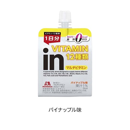 お店TOP>健康食品>栄養・美容系飲料>ゼリー飲料>ゼリー飲料全部>森永製菓 inゼリー (6個入×2セット/3セット)商品区分:栄養機能食品(栄養成分:グレープフルーツ味・パイナップル味:ビオチングレープ味:鉄、カルシウム、亜鉛、銅)【森永製菓 inゼリーの商品詳細】●飲むゼリータイプの栄養補助食品です。【栄養成分(栄養機能食品)】グレープフルーツ味・パイナップル味:ビオチングレープ味:鉄、カルシウム、亜鉛、銅【保健機能食品表示】★グレープフルーツ味・パイナップル味:ビオチンは、皮膚や粘膜の健康維持を助ける栄養素です。★グレープ味:鉄は、赤血球を作るのに必要な栄養素です。カルシウムは、骨や歯の形成に必要な栄養素です。亜鉛は、味覚を正常に保つ、皮膚や粘膜の健康維持を助ける、たんぱく質・核酸の代謝に関与して健康維持に役立つ栄養素です。銅は、赤血球の形成を助け、多くの体内酵素の正常な働きと骨の形成を助ける栄養素です。【基準値に占める割合】グレープフルーツ味・パイナップル味:ビオチン:100%〜236%グレープ味:鉄、カルシウム、亜鉛、銅:33%【1日あたりの摂取目安量】1日当たり1袋を目安にお召し上がりください。【召し上がり方】冷やすといっそうおいしくなります。【品名・名称】清涼飲料水(ゼリー飲料)【栄養成分】★グレープフルーツ味:1袋(180g)当たりエネルギー:90kcal、たんぱく質:0g、脂質:0g、炭水化物:22.5g、食塩相当量:0.11g、カリウム:49mg、リン:0.5〜3.0mg、ナイアシン:13.0〜25.2mg、パントテン酸:4.8〜20.5mg、ビオチン:50〜118μg、ビタミンA:770〜1367μg、ビタミンB1:1.2〜2.8mg、ビタミンB2:1.4mg、ビタミンB6:1.3mg、ビタミンB12:2.4〜5.9μg、ビタミンC:100〜248mg、ビタミンD:5.5〜16.4μg、ビタミンE:6.3mg、ビタミンK:0μg、葉酸:240〜786μg、ビオチン50〜118μg(100%〜236%)★パイナップル味:1袋(180g)当たりエネルギー:0kcal、たんぱく質:0g、脂質:0g、炭水化物:11.9g(糖質:11.4g(糖類:0g)、食物繊維:0.2〜0.8g)、食塩相当量:0.27g、ナイアシン:13.0〜25.2mg、パントテン酸:4.8〜20.5mg、ビオチン:50〜118μg、ビタミンA:770〜1367μg、ビタミンB1:1.2〜2.8mg、ビタミンB2:1.4mg、ビタミンB6:1.3mg、ビタミンB12:2.4〜5.9μg、ビタミンC:100〜248mg、ビタミンD:5.5〜16.4μg、ビタミンE:6.3mg、ビタミンK:0μg、葉酸:240〜786μg★グレープ味:1袋(180g)当たりエネルギー:90kcal、たんぱく質:0g、脂質:0g、炭水化物:22.5g、ナトリウム:1〜10mg、鉄:2.5mg(33%)、カルシウム:233mg(33%)、亜鉛:2.3mg(33%)、銅:0.2mg(33%)、マグネシウム:35mg※( )内は、栄養素等表示基準値に占める割合【アレルギー物質】なし【保存方法】★直射日光・高温・多湿を避けて保存してください【注意事項】★グレープフルーツ味・パイナップル味・ビタミンAを含みますので妊娠3か月以内又は妊娠を希望する女性は過剰摂取にならないように注意してください。★グレープ味・亜鉛の摂りすぎは、銅の吸収を阻害するおそれがありますので、過剰摂取にならないよう注意してください。★共通・食生活は、主食、主菜、副菜を基本に、食事のバランスを。・「1日分」は、栄養素等表示基準値を目安にしています。・本品は、特定保健用食品と異なり、消費者庁長官による個別審査を受けたものではありません。・医薬品を服用している場合は医師、薬剤師に相談してください。・本品は、多量摂取により疾病が治癒したり、より健康が増進するものではありません。一日の摂取目安量を守ってください。・小児は本品の摂取を避けてください。・凍結させたものを解凍すると、風味・食感が変わることがあります。・開封後はすぐにお飲みください。・水分が分離したり色調が変わることがありますが、品質には問題ありません。・容器への強い衝撃はお避けください。容器が破損することがあります。・飲み終わった容器は自治体の区分に従ってください。【原産国】日本【発売元、製造元、輸入元又は販売元】森永製菓商品に関するお電話でのお問合せは、下記までお願いいたします。化粧品以外(食品、飲料等):0120-560-162(月曜日〜金曜日(祝日を除く) 午前10時〜午後4時)化粧品:0120-80-5580(9時〜19時、土・日・祝日も問合せ可)リニューアルに伴い、パッケージ・内容等予告なく変更する場合がございます。予めご了承ください。森永製菓108-8403 東京都港区芝5-33-1 ※お問合せ番号は商品詳細参照広告文責:楽天グループ株式会社電話:050-5577-5043[ダイエット食品]