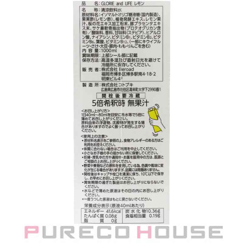 商品名 : GLORIE (グロリエ) and LIFE レモン (酵素ドリンク) 1000ml