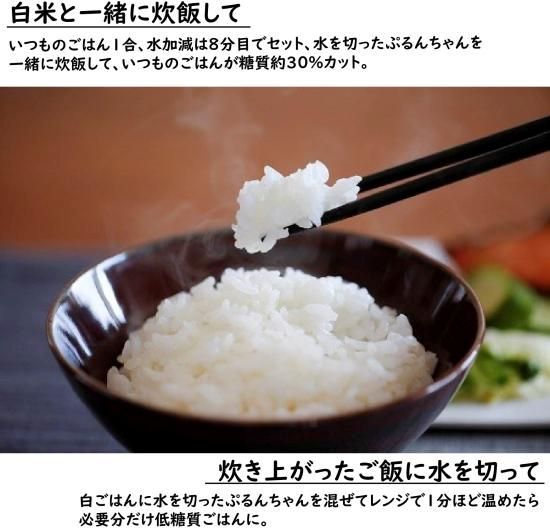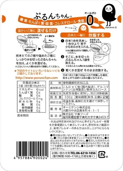 ダイエット粒100g 商品詳細 ◆オーミケンシ株式会社 ぷるんちゃん ダイエット粒100g ・4袋(メール便) ・15袋(宅急便) の2種類からお選び頂けます。 ◆賞味期限:2026年3月13日以降 ◆商品詳細 水洗いなし! そのまま混ぜるだけ!! 「糖質0gぷるんちゃん カロリーダイエット粒」 簡単に、いろいろな食べ方ができる 万能タイプ♪ ● 新しい糖質0g食品の粒タイプ! ぷるんちゃんは、食物繊維「セルロース」 とこんにゃくの主成分「グルコマンナン」 から できた、新しい糖質0g食品です。 これまでになかった「ぷるん」とした弾力。 ダイエット食品はまずい、 という観念を打ち破りました。 ●「糖質0gぷるんちゃん カロリーダイエット粒」のうれしい5つのPOINT! 1:驚きの糖質0g 食物繊維加工品で、糖質はありません。 2:1袋(100g)あたりカロリー6kcal グルコマンナンのカロリーが6kcal。 3:1袋(100g)あたり食物繊維5g 4:安心のグルテンフリー プレーンタイプは小麦を使用していないため グルテンフリーです。 5:お料理にも使いやすい「こんにゃく臭なし」 セルロースにこんにゃく成分を加えていますが、 特有のこんにゃく臭無し。和・洋・中のお料理に。 ◆お召し上がり方 ・白米と一緒に炊飯して いつものごはん1合、水加減は8分目でセット、水を切ったぷるんちゃんを 一緒に炊飯。 ・炊き上がったご飯に水を切って 白ごはんに水を切ったぷるんちゃんを混ぜてレンジで1分ほど温めたら 必要分だけ低糖質ごはんに。 ・そのまま、お茶漬けやスープに お米を使わない究極の糖質オフ。ぷるんとした独特の食感が楽しめます。 超簡単あさごはんには、市販で売られているスープを使って、雑炊、リゾット風に。 手軽に簡単に糖質オフ!! →粒タイプは、気になるにおいもなく味もない「プレーンタイプ」です。 白米といっしょに炊飯して、炊き上がったごはんに水を切ってまぜて、 そのまま水も活かしてスープに・・・・いろいろな食べ方ができる万能タイプです。 ◆参考販売価格:1個 270円 食品ロスの取り組みについて ◆食品ロスをなくしましょう! 当ショップは賞味期限間近、もしくは賞味期限切れの商品を取り扱っているフードロス削減ショップでございます。 賞味期限は、消費期限と違います。メーカーが保証するおいしく食べられる期間です。 この機会に、「賞味期限が過ぎてもまだ美味しく食べられる」事を理解して頂ける方が増えますように。 当店では、NPO法人日本もったいない食品センター様と連携のもと安心してお召し上がり頂ける食品を販売しております。 弊社スタッフも試食済♪ また、本販売の売上げ剰余金は食品ロス軽減の活動費、生活困窮者様への支援金として活用されます。 発送詳細 ※発送の際、送り主は当ショップ名を記載させて頂きます。 送り主名の変更等はご注文の際の備考欄に記入頂くかお問い合わせフォームよりご記入ください。 ギフト等でご注文の際もご希望が無い場合はショップ名でお送りしますので事前に送り先のお客様にお伝えするようお願い致します。 ※リニューアル等でパッケージ・内容等予告なく変更される場合がございます。 ※メーカーのキャンペーンやリニューアルにより、パッケージが変更されお届けした商品画像と異なる場合がたまにございます。 パッケージ違いや、キャンペーンシールが付いていない等を理由にした交換・キャンセルは当店ではお受けできませんので、予めご了承ください。 ※なるべく売り越しがないように在庫管理はしておりますが、他店舗や実店舗でも販売をしておりますので、土日祝等在庫調整ができない間に在庫切れとなる場合がございます。誠に申し訳ございませんが、予めご了承くださいませ。 その際、振り込み手数料等の返金はできませんので、予めご了承くださいませ。(クレジット決済ですと手数料はかかりません。) ※商品をお送りしてから、1週間以内にお受け取りいただかないと、配送業者の保管期間の影響でこちらに戻ってきてしまいます。 ですので当店からの発送通知は必ずご確認ください。 メール設定等で発送通知が届かない場合は商品ページに記載の配送日数をご確認の上 マイページより発送されたかのご確認をお願いします。 発送通知送信後7日以内に商品が届かない場合は、 マイページから配送会社と追跡番号を確認の上、お客様ご自身で配送会社へお問い合わせ・再配達依頼を行ってください。 賞味期限のある商品は長期不在で弊社に戻ってきた場合、如何なる理由がございましても一切の返金を行う事が出来かねます。 再送をご希望の場合は返送の際にかかった送料と再送料の往復送料が必要となります。 長期不在によるキャンセルに関しましては発送の際にかかった送料と返送の際にかかった送料の往復送料を当店が負担しておりますので、ご注文件の返金は一切できないものとさせて頂きます。 「不在表が入っていなかった」等の理由はこちらからはお調べしようがございませんので、マイページの配送情報をご