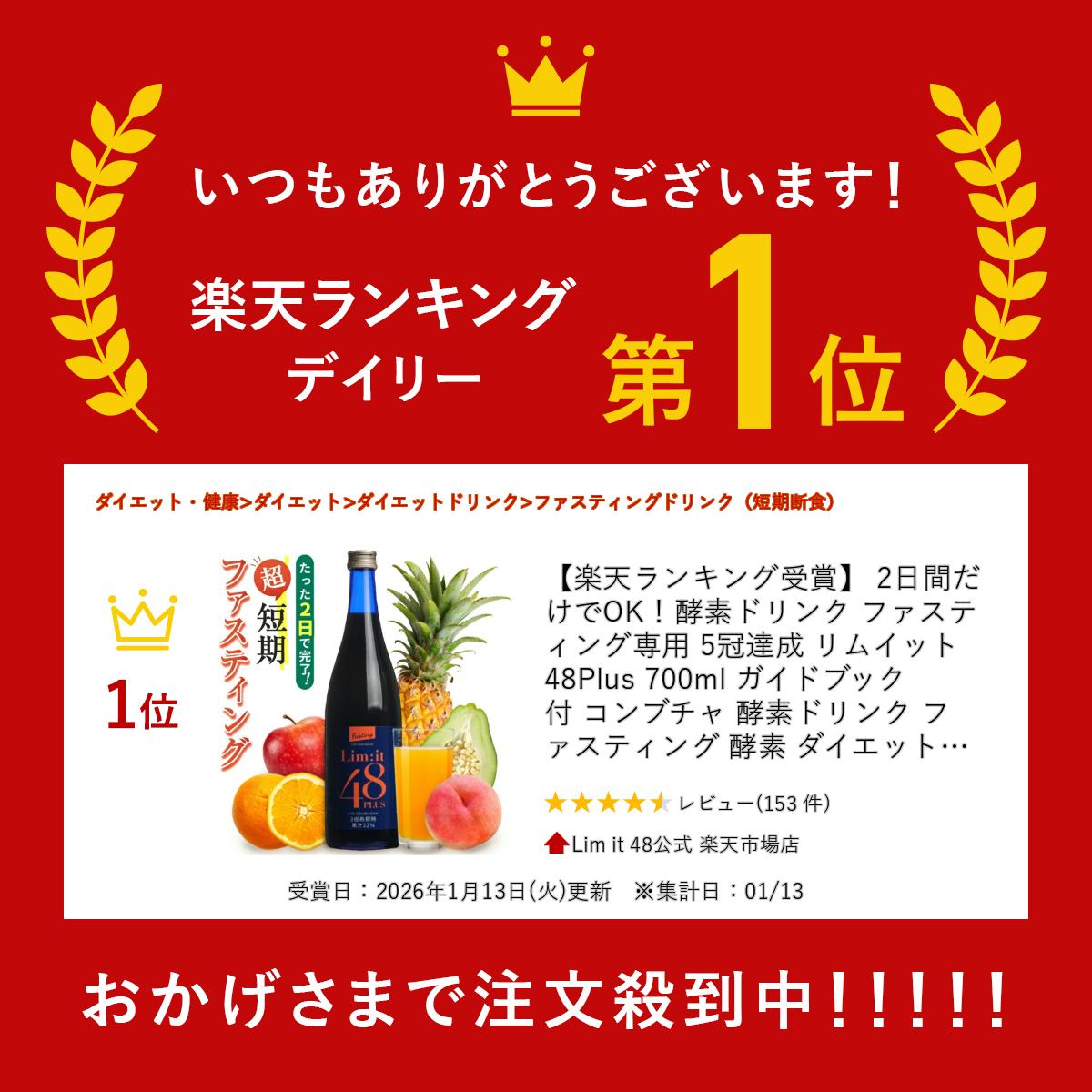 商品名 : 2日間だけでOK! 酵素ドリンク ファスティング専用 5冠達成 リムイット48Plus 700ml ガイドブック付 コンブチャ ファスティング 酵素 ダイエット ドリンク 美味しい 断食