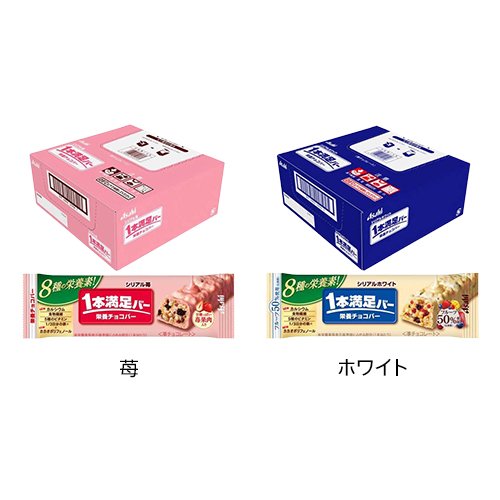 お店TOP>健康食品>ダイエットサポート>バランス栄養食>バー(バランス栄養食品)>アサヒ 1本満足バー シリアルシリーズ (9本入)【アサヒ 1本満足バー シリアルシリーズの商品詳細】●間食・おやつの満足感を楽しめるシリアルチョコレートバー。●「鉄1/3日分*」「食物繊維」「5種のビタミン(B1、B2、B6、B12、E)」を1本で美味しく摂取することができます。*栄養素等表示基準値に占める割合2025年10月1日 4946842540549、4946842540556、4946842540563、4946842540570 リニューアル2025年12月25日 4946842540587 削除【召し上がり方】開封後はお早めにお召し上がりください。【品名・名称】準チョコレート【アサヒ 1本満足バー シリアルシリーズの原材料】★苺:準チョコレート(植物油脂、乳糖、砂糖、全粉乳、ココアバター)(国内製造)、コーンフレーク(コーングリッツ、砂糖、その他)、レーズン、小麦パフ(小麦粉、でん粉、モルトエキス)、イソマルトデキストリン、苺加工品、苺パウダー、フルーツソース、乳等を主要原料とする食品、カカオ豆エキスパウダー/乳化剤(大豆由来)、酸味料、香料、炭酸Ca、ピロリン酸第二鉄、ベニコウジ色素、酸化防止剤(V.E)、V.B6、V.B2、V.B1、V.E、V.B12★ホワイト:準チョコレート(植物油脂、乳糖、砂糖、全粉乳、ココアバター)(国内製造)、コーンフレーク(コーングリッツ、砂糖、その他)、レーズン、小麦パフ(小麦粉、でん粉、モルトエキス)、イソマルトデキストリン、苺加工品、ドライクランベリー、乳等を主要原料とする食品、カシス加工品、たんぱく質濃縮ホエイパウダー、マンゴー加工品、カカオ豆エキスパウダー、ブルーベリー加工品、食塩/乳化剤(大豆由来)、炭酸Ca、香料、ピロリン酸第二鉄、酸味料、酸化防止剤(V.E)、V.B6、V.B2、V.B1、V.E、V.B12★チョコ:準チョコレート(砂糖、植物油脂、カカオマス、全粉乳、乳糖)(国内製造)、コーンフレーク(コーングリッツ、砂糖、その他)、アーモンド、小麦パフ(小麦粉、でん粉、モルトエキス)(大豆を含む)、レーズン、イソマルトデキストリン、乳等を主要原料とする食品、カカオ豆エキスパウダー、食塩/乳化剤、香料、炭酸Ca、ピロリン酸第二鉄、V.E、酸化防止剤(V.E)、V.B2、V.B6、V.B1、酸味料、V.B12★ブラック 糖類80%オフ:準チョコレート(マルチトール、植物油脂、ココアパウダー、カカオマス、デキストリン)(乳成分を含む)(国内製造)、コーンフレーク(コーングリッツ、砂糖、その他)、マカダミアナッツ、小麦パフ(小麦粉、でん粉、モルトエキス)(大豆を含む)、レーズン、イソマルトデキストリン、カカオ豆エキスパウダー、食塩/乳化剤、炭酸Ca、香料、ピロリン酸第二鉄、甘味料(スクラロース)、酸化防止剤(V.E)、V.B6、V.B2、V.B1、V.E、酸味料、V.B12【栄養成分】1本(37g)当たり★苺/エネルギー:197kcal、たんぱく質:1.6g、脂質:11g、炭水化物:23.8g(糖質:22g(糖類:15g)、食物繊維:1.8g)、食塩相当量:0.13g、カルシウム:48mg、鉄:4.2mg、ビタミンB1:0.21mg、ビタミンB2:0.26mg、ビタミンB6:0.19mg、ビタミンB12:0.2〜0.8μg、ビタミンE:1.4〜3.1mg★ホワイト/エネルギー:188kcal、たんぱく質:1.6g、脂質:10g、炭水化物:23.9g(糖質:22g(糖類:15g)、食物繊維:1.9g)、食塩相当量:0.14g、カルシウム:48mg、鉄:4.4mg、ビタミンB1:0.21mg、ビタミンB2:0.25mg、ビタミンB6:0.20mg、ビタミンB12:0.2〜0.9μg、ビタミンE:1.5〜3.1mg★チョコ/エネルギー:189kcal、たんぱく質:2.7g、脂質:10g、炭水化物:23.1g(糖質:21g(糖類:13g)、食物繊維:2.1g)、食塩相当量:0.15g、カルシウム:48mg、鉄:4.6mg、ビタミンB1:0.18mg、ビタミンB2:0.26mg、ビタミンB6:0.16mg、ビタミンB12:0.36μg、ビタミンE:1.1〜2.4mg★ブラック 糖類80%オフ/エネルギー:183kcal、たんぱく質:2.4g、脂質:10g、炭水化物:22.9g(糖質:19g(糖類:1.8g)、食物繊維:3.9g)、食塩相当量:0.14g、カルシウム:61mg、鉄:5.0mg、ビタミンB1:0.20mg、ビタミンB2:0.22mg、ビタミンB6:0.19mg、ビタミンB12:0.2〜0.7μg、ビタミンE:1.2〜2.5mg【アレルギー物質】苺、ホワイト:小麦・乳成分・大豆チョコ:小麦・乳成分・アーモンド・大豆ブラック 糖類80%オフ:小麦・乳成分・大豆・マカダミアナッツ【保存方法】直射日光・高温多湿を避け、28度以下で保存【注意事項】・チョコレートは高温になると油脂分が溶け、冷えると白く固まることがあります。召し上がってもさしつかえありませんが、本来の風味より劣ります。・商品中の黒いかたまりはレーズンです。・開封後はお早めにお召し上がりください。・かための食感のため、歯をいためないようご注意ください。・本品製造工場では、くるみ・卵・落花生を含む製品を製造しています。・一度に多量にお召し上がりになると、体質によりお腹がゆるくなる場合があります。・品質の不都合はお取替えします。【原産国】日本【ブランド】1本満足バー【発売元、製造元、輸入元又は販売元】アサヒグループ食品商品に関するお電話でのお問合せは、下記までお願いいたします。菓子、食品、健康食品、サプリメント、スキンケアなど:0120-630611ミルク、ベビーフード、乳幼児用品専用:0120-889283リニューアルに伴い、