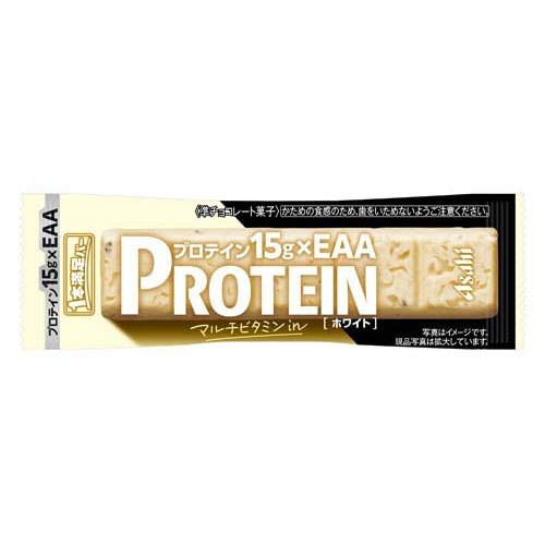 お店TOP>健康食品>ダイエットサポート>バランス栄養食>バランス栄養食品・栄養調整食品>1本満足バー プロテインホワイト (9本入×3セット)【1本満足バー プロテインホワイトの商品詳細】●手軽にプロテインとEAAを補給できるシリアルチョコバー。●「プロテイン15g」・「EAA」・「マルチビタミン」を1本でおいしく摂取することができます。●ミルキーな味わいのホワイトチョコに大豆パフを混ぜ合わせ、ミルキーな甘さとザクザク食感を楽しめます。レーズンの爽やかな酸味がアクセント。●チョコを使用しプロテイン入りとは思えないおいしさを実現。【品名・名称】準チョコレート菓子【1本満足バー プロテインホワイトの原材料】準チョコレート(植物油脂、乳糖、砂糖、全粉乳、ココアバター)(国内製造)、大豆パフ(大豆たん白、でん粉、植物油脂)、大豆パフ(大豆たん白、でん粉)(小麦を含む)、ホエイたん白、イソマルトデキストリン、大豆たん白、植物油脂、レーズン、たんぱく質濃縮ホエイパウダー、乳等を主要原料とする食品/乳化剤、炭酸Ca、トレハロース、ロイシン、リジン、バリン、イソロイシン、スレオニン、香料、フェニルアラニン、メチオニン、V.E、ヒスチジン、トリプトファン、V.B6、V.B2、V.B1、V.B12【栄養成分】1本(39g)当たりエネルギー:188kcal、たんぱく質:16g、脂質:8.9g、炭水化物:11.9g(糖質:9.8g、食物繊維:2.1g)、食塩相当量:0.48g、ビタミンB1:0.14mg、ビタミンB2:0.20mg、ビタミンB6:0.18mg、ビタミンB12:0.58μg、ビタミンE:1.3mg(製造時配合)リジン:10mg、ヒスチジン:0.92mg、フェニルアラニン:5.4mg、ロイシン:32mg、イソロイシン:8.5mg、メチオニン:2.5mg、バリン:8.8mg、スレオニン:7.4mg、トリプトファン:0.53mg【アレルギー物質】小麦・乳成分・大豆【保存方法】直射日光・高温多湿を避け、28度以下で保存。【注意事項】・チョコレートは高温になると油脂分が溶け、冷えると白く固まることがあります。召し上がってもさしつかえありませんが、本来の風味より劣ります。・商品中の黒いかたまりはレーズンです。・商品中の黒い点はバニラビーンズシードです。・開封後はお早めにお召し上がりください。・かための食感のため、歯をいためないようご注意ください。・本品製造工場では、卵・落花生を含む製品を製造しています。・品質の不都合はお取替えします。【原産国】日本【ブランド】1本満足バー【発売元、製造元、輸入元又は販売元】アサヒグループ食品※説明文は単品の内容です。商品に関するお電話でのお問合せは、下記までお願いいたします。菓子、食品、健康食品、サプリメント、スキンケアなど:0120-630611ミルク、ベビーフード、乳幼児用品専用:0120-889283リニューアルに伴い、パッケージ・内容等予告なく変更する場合がございます。予めご了承ください。・単品JAN:4946842529131アサヒグループ食品130-8602 東京都墨田区吾妻橋1-23-1 アサヒグループ本社ビル ※お問合せ番号は商品詳細参照広告文責:楽天グループ株式会社電話:050-5577-5043[ダイエット食品/ブランド:1本満足バー/]