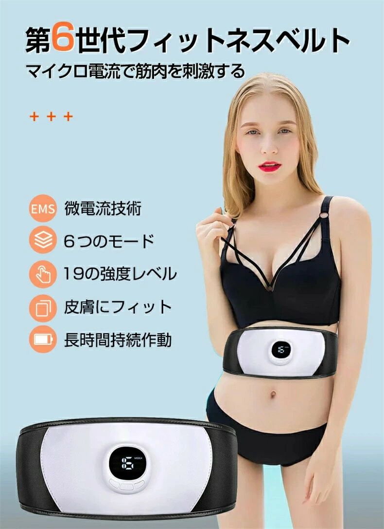 【ウエストと腹部のトレーニングをより効率的に!】 本製品は優れた脂肪取る効果を持っています。微小電流腹筋ベルトは自動的に筋肉の位置を認識し、定位で刺激します。マイクロエレクトリックボードのさまざまな位置から微小電流を放射し、より効果的です。電流を定位し、電流信号を無駄にしないため、筋肉の動きがより効果的になります。 【さまざまな使用ニーズに応じる】 各種の肥満をKOするEMSマッサージベルト!過度摂食の肥満、産後体つきの崩れ、ビールの飲み過ぎによる肥満、遺伝性肥満の方のダイエットニーズを応えます。 【多種モード】 6つのモードで、さまざまな使用ニーズに応じます。各モードには1〜19段階の強度レベルがあり、自由に調節出来ます。(必要に応じて適切な強度を選択してください。) 【USB充電式交換ジェルシート不要】 電池交換不要のUSB充電式です。両面挿し対応のType-C端子で充電をもっと便利に。また 導電性シリカゲルがついており、消耗品のジェルシートは不要ですのでとても経済的です。 【パッケージリスト】 スリミングベルト×1、充電ケーブル×1、取扱説明書×1