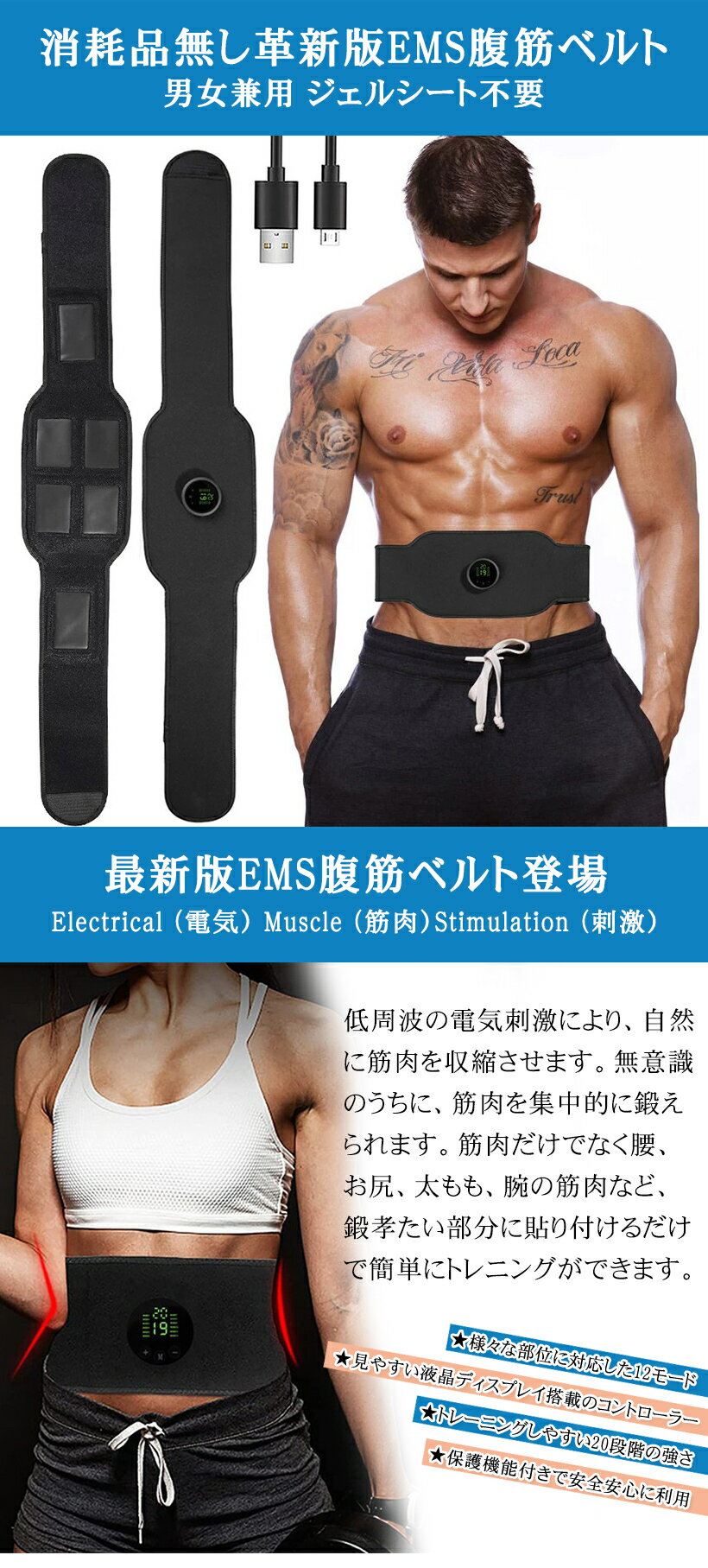 商品名 : EMS 腹筋ベルト EMS ベルト 腹筋マシン器具 腹筋パッド日本語モード 消耗ジェルシート不要 延長ベルト追加 脂肪燃烧 筋肉刺激 充電式 6種類モード 15段階強度 男女兼用