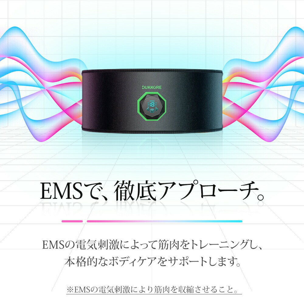 革新的な EMS 腹筋ベルト ★この革新的な技術は弱電流で、電気信号を直接筋肉に伝え、筋肉を収縮させることができます。 ★このK03 腹筋ベルト は弱電流によって刺激された、筋肉はよりがっしりした効果ができます。 ★体につけてボタンを押せば、筋トレ開始します。持ち歩き便利で好きな時間に、好きな場所で気軽に使える。 ★日々の積み重ねで、筋肉は強化された効果が出ますが、人それぞれの体質が違うので、効果が異なる場合もあります。 保護機能付きの 腹筋 ベルト ★動作時間が20分間を経過すると自動オフにしま、安全安心に利用いただけます。 ★電源をONにして10秒以内操作がない場合、もしくは皮膚と外れる10秒以上の場合、安全保護ために自動的に電源オフになります。 ★テレビを見ながらリラックスタイムに、勉強・お仕事中また家事をしながら、いつでもどこでも自在に腹筋を鍛えることができます。 ★体重や体型管理がもっと効率かつ便利し、プレゼントにも喜ばれる、おすすめの実用性高いフィットネスマシンです。 液晶表示のコントローラー ★K03 腹筋ベルトは6種類モード、9段階強度があります、改良新型モデルのコントローラーは液晶画面が搭載されています。 ★液晶画面でモード、強度を表示されます、身体に装着して使用時に、作動している状態(モードの種類、段階の強度)を見て確認できます。 ★もっと安心に、もっと明瞭にトレーニングを楽しめます、usb充電式なので、電池交換の必要がございません。 高効率な 腹筋 ベルト ★腹筋ベルトで20分の運動量はジョッキング1500m、自由泳30分、腹筋鍛え30分にあたります。 ★脂肪燃焼ダイエット(初)から筋力増強(中)またボディビルディングの構築(高)まで、6種モードと9段階強度調節も備えています。 ★モードや強度が組み合わせて軽快なポリリズムの刺激を与え、強力かつ弾力性の刺激で深層の筋力を増加させます。 ★初心者にも女性にも、特にサラリーマンや運動不足の方にも多様需求を満足し、安全性や静音性に優れる腹筋器具で疲労回復にも効果があります。 パッケージ内容 | 安全保証 ★ 腹部ベルト×1 ★ 腕用ベルト×2 ★ コントローラー×3 ★ 追加ジェルシート×10 ★ USB充電ケーブル×1 ★ 日本語取扱説明書×1 ※ この商品は三ヶ月の安心保証付いておりますので、商品に何か不具合がございましたら、ご連絡をいただきましたら、対応いたします。 ご注意 ※急速充電を対応しておりません、ご注意ください。 ※こちらの商品は5V2.0Aまでのアダプターのご使用を推薦しております。 ※心臓病患者、妊娠者、産後婦人(産後60日間以内)などご利用しないでください。 メーカー希望小売価格はメーカーサイトに基づいて掲載しています メーカー希望小売価格はメーカーサイトに基づいて掲載しています
