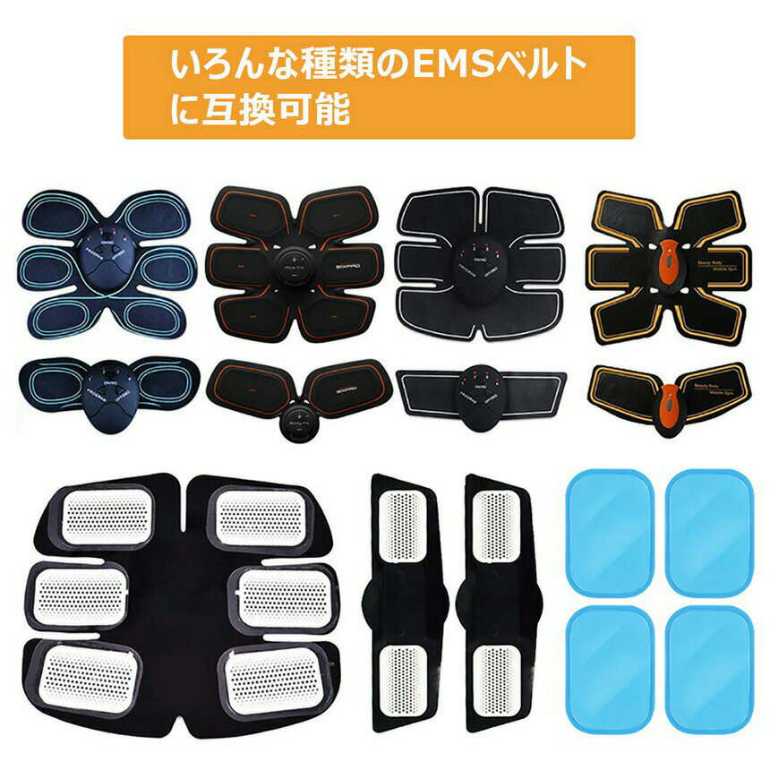 【EMS腹筋ベルト用の交換パット】EMS腹筋 ベルト対応互換パッド、互換ジェルシートになります、Abs Fit Body Fitにも対応できます。このパッドは純正品ではなく、互換品、互換ジェルシートになります。【肌になじむ材料】低刺激:肌に優しい作り、透明で柔らかいヒドロゲルです。吸湿性:ジェルシート内の湿度を一定に保つ働きがあります。【ご注意】ジェルシートは消耗品です。開封後1ヶ月を過ぎた時 、またはご使用回数(肌への着脱) が30回程度になった時、新品と交換してください。※肌のアレルギー・傷・かぶれ部分には貼らないでください。【パッケージ内容】サイズ:4cm*6cm【枚数】2枚入×20袋 合計40枚です。毎枚も透明フィルムで上下に貼って、専用密封袋でおいて保護られます。特徴:◆粘着性抜群本体を装着している間は粘着性に優れ、身体からはがした後はサラッとした使い心地です。ご使用後はパッドを本体には貼り付けたまま、接着面が汚損しないように保管してください。◆無毒無害素材で低刺激本製品は安全な素材を使用しており、角質に入り込みにくく、本体を身体からはがした際も肌へのダメージが少ないです。だが、すべての方にアレルギーが出ないという訳ではございませんので、ご使用前に必ずパッチテストを行ってください。万が一、異常を感じた場合はただちに使用を中止してください。*商品仕様*セット内容: 40枚入対応機種:様々なEMSベルトに互換できます。サイズ:約6.0*4.0CM*ご使用の際はジェルシートのサイズが製品より大きい場合は、はさみなどで好きな大きさを調整してお使いなさい。*EMS腹筋ではございませんのでご注意ください。*使用方法*1.ジェルシートについてるフィルム(ブルー)を剥がします。2.空気が入らないように注意しながら、本体の電極部に貼ります。3.電極部全体を覆うようにジェルシートを貼り付けます。4.すぐにトレーニングを開始しない場合は、台紙(透明フィルム)に貼り付けて収納しなさい。*お手入れ方法*ゲルパッドの粘着面が汚れて身体に貼り付けにくくなったら、下記の手順でお手入れをしてください。1.指先に水滴をつけてゲルパッドの粘着面をこすり、汚れを取り除く。2.十分に水分を切り、粘着面を上にして、風通しの良い日陰で自然乾燥させる。3.表面の水気がなくなるまで自然乾燥させてから、保管台紙を貼り付ける。*ご注意*肌トラブルの原因になる可能性があるため、肌の傷やかぶれ▪敏感な部分には貼らないでください。必ず使用者1人に限定し、定期に交換して下さい。粘着力が低下したら、接着面の汚れや皮脂を水で拭き取って下さい。粘着力が改善しない場合が交換の目安で、 お肌を清潔にしてからご使用下さい。発疹等トラブルが生じた場合は、直ちに使用を中止し、医師に相談して下さい。接続機器のマニュアルに従い、機器と適合するかどうかご確認下さい。事故の原因となる恐れがあるため、子供の手の届かない場所に保管してください。本製品は高電導のジェルシートであり、本来以外の目的を使用しないでください。