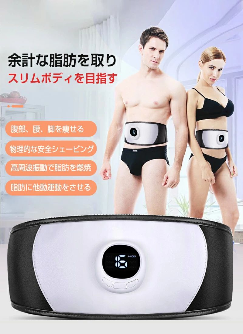 【ウエストと腹部のトレーニングをより効率的に!】本製品は優れた脂肪取る効果を持っています。微小電流腹筋ベルトは自動的に筋肉の位置を認識し、定位で刺激します。マイクロエレクトリックボードのさまざまな位置から微小電流を放射し、より効果的です。電流を定位し、電流信号を無駄にしないため、筋肉の動きがより効果的になります。【さまざまな使用ニーズに応じる】各種の肥満をKOするEMSマッサージベルト!過度摂食の肥満、産後体つきの崩れ、ビールの飲み過ぎによる肥満、遺伝性肥満の方のダイエットニーズを応えます。【多種モード】6つのモードで、さまざまな使用ニーズに応じます。各モードには1〜19段階の強度レベルがあり、自由に調節出来ます。(必要に応じて適切な強度を選択してください。)【USB充電式・交換ジェルシート不要】電池交換不要のUSB充電式です。両面挿し対応のType-C端子で充電をもっと便利に。また 導電性シリカゲルがついており、消耗品のジェルシートは不要ですのでとても経済的です。【パッケージリスト】スリミングベルト×1、充電ケーブル×1、取扱説明書×1