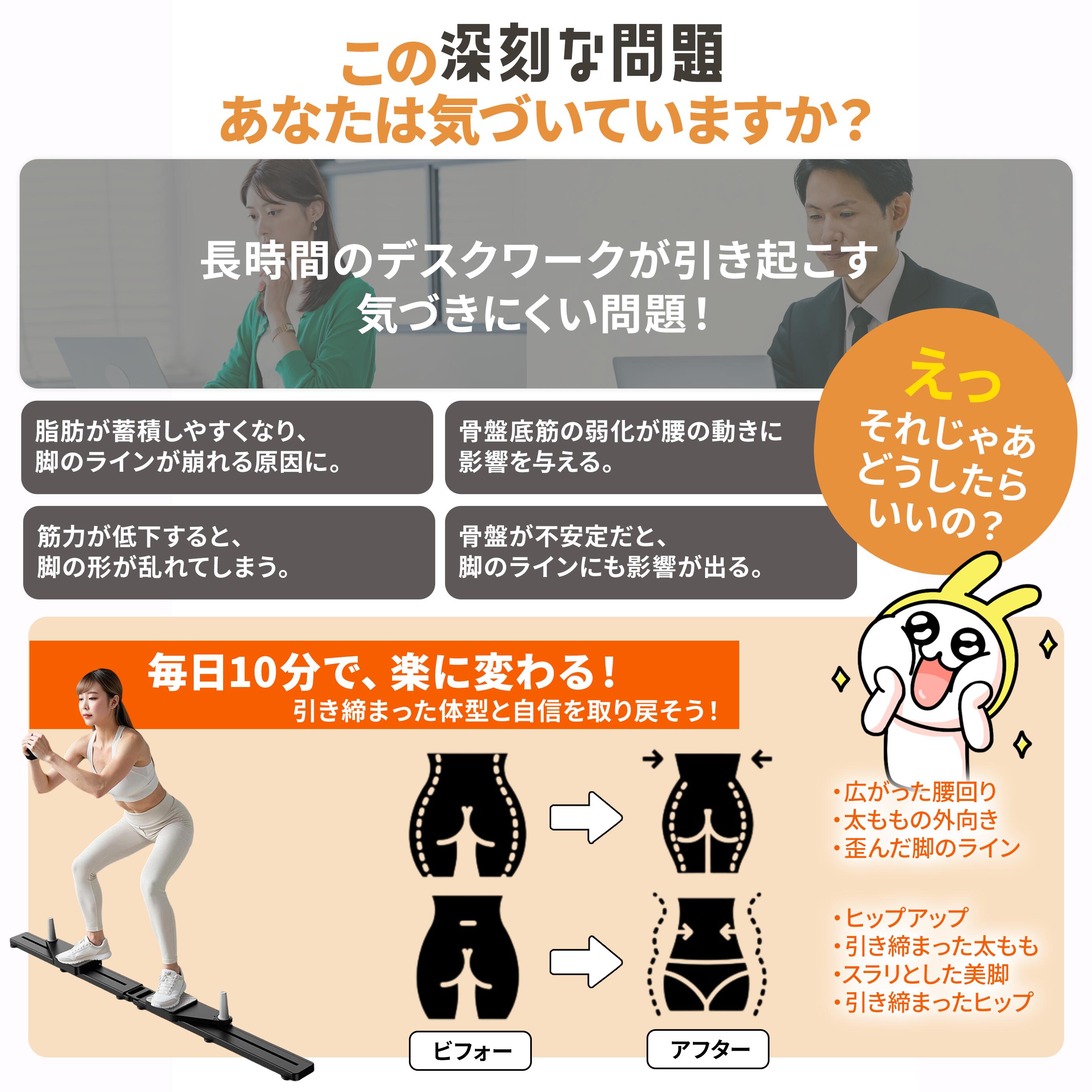 関連キーワード ピラティスボード トレーニングボード 多機能トレーニングボード ピラティス ピラティスマシン ピラティス ボード マシンピラティス 腹筋マシーン ピラティスボード 自宅 ピラティス トレーニングボード ピラティスバンド ピラティス バンド ピラティスマシン 自宅 ピラティスマシン マシン ピラティスマシン 自宅用 折りたたみ ピラティスマシン マシンピラティス 自宅用 自宅 マシンピラティス【製品概要】 初心者や自宅トレーニングに適した分離式ピラティスボード 運動が苦手な方でも始めやすい設計の分離式トレーニングボードです。 負担を抑えながら、1台で全身トレーニングに対応。省スペースな自宅環境でも使いやすい構造です。 【おすすめポイント】 POINT1 1台で全身トレーニング 腹筋や体幹に加え、腕・背中・脚を使った動きに対応。内転筋・大臀筋・骨盤底筋など、下半身と体幹をバランスよく使いやすい設計です。 POINT2 安定設計で初心者も安心 接地面積が広く、低重心設計により動作中もぐらつきにくい構造。フォームを意識しやすく、安心してトレーニングが行えます。 POINT3 分離式構造で調整可能 分離式のため、体型やトレーニング内容に合わせて支点や間隔の調整が可能。固定式に比べて動作の幅が広がります。 POINT4 自宅向けの快適設計 滑りにくく握りやすいハンドル、クッション性のあるサポートパッド、静音設計で床への配慮もされています。膝マット付きです。 POINT5 省スペース収納 分解可能で薄型設計。机の下やソファ下、壁際などに収納しやすく、生活空間を圧迫しません。 POINT6 在宅で短時間トレーニング ジムに通わず、自宅でスキマ時間に使いやすい設計。運動習慣を始めたい方におすすめです。 【主な仕様】 商品名 ピラティスボード 用途 腹筋/体幹/全身トレーニング 構造 分離式(調整可能設計) 特徴 安定設計/防滑ハンドル/クッションパッド/静音仕様 サイズ 約170×14.7×6.5cm 重量 約2.4kg 最大耐荷重 100kg 付属品 膝マット ※記載内容は提供情報の範囲に基づいています。 【注意事項】 ・安定した平らな床面でご使用ください。 ・無理のない範囲で正しいフォームを意識してご使用ください。 ・床材や使用環境により使用感が異なる場合があります。 【関連キーワード】 ピラティスボード トレーニングボード 分離式 体幹トレーニング 腹筋 全身トレ 自宅トレーニング 省スペース 静音 防滑 膝マット付き 初心者