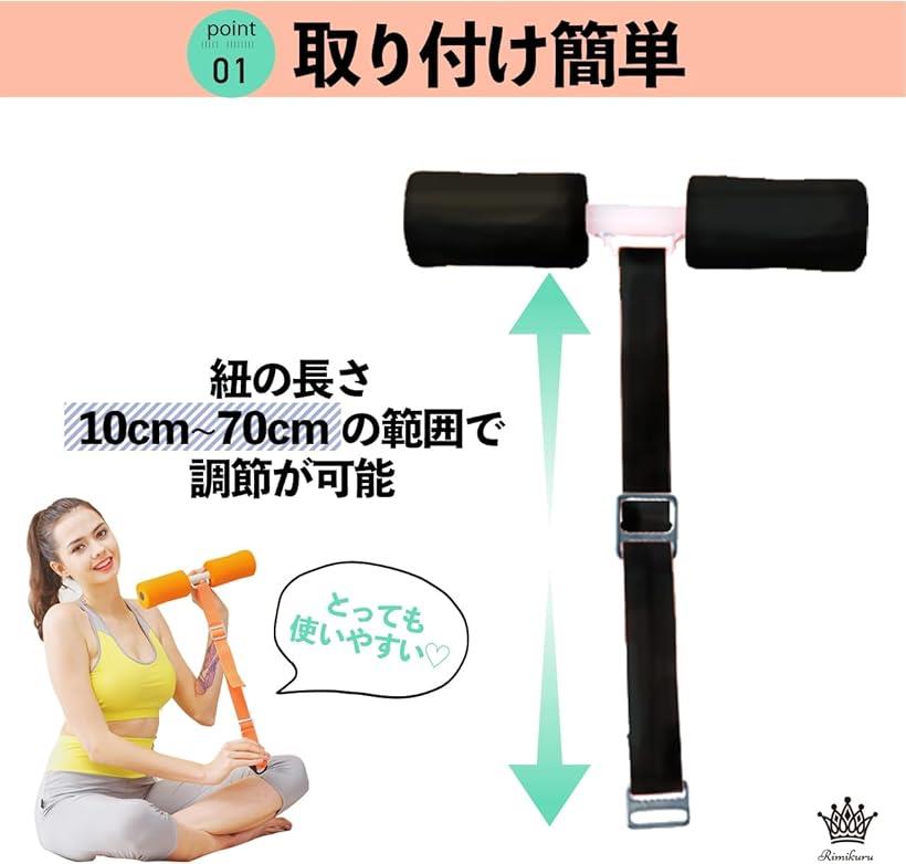 豊富な4カラーから選べる腹筋用固定器具:ベッドの端に取り付けるだけで、簡単に腹筋エクササイズができる腹筋 足固定 器具になります。こちらの腹筋マシーン 足押さえを使用することで合間時間など手軽にベッドの上で腹筋トレーニングをすることができます。取り付け簡単:ベッドの天板に挟んだり、ベッドフレームにフックで固定したり、直接ベッドフレームに巻き付けて固定する3パターンでのお取り付けができる腹筋マシーン 足固定器具なので、ご自宅のベッドの形状などに合わせて簡単に取り付けができる仕様になっております。紐の長さも10cm~70cmの範囲で調節ができますので幅広く調整が可能です。場所を取らずに手軽に腹筋 トレーニングができる:場所を取らないコンパクトな腹筋用足固定器具になっておりますので、家事などの合間や就寝前、起床後すぐや休日など時間がある時に手軽に腹筋 筋トレをすることができます。豊富なカラーバリエーション:ブラック・ピンク・ブルー・オレンジの4カラーをご用意しましたのでお好みに合わせてお選びいただけます。「商品仕様」セット内容:腹筋用足固定器具 x1点 サイズ:幅 約29.7cm 紐の長さ 10cm~70cmの範囲で調節可能 重さ:約600g カラー:オレンジ / ブルー / ブラック / ピンク *モニターの環境等により、色の見え方に若干差が生じる場合がございます。※ 他ネットショップでも併売しているため、ご注文後に在庫切れとなる場合があります。予めご了承ください。※ 品薄または希少等の理由により、参考価格よりも高い価格で販売されている場合があります。ご注文の際には必ず販売価格をご確認ください。※ 沖縄県、離島または一部地域の場合、別途送料の負担をお願いする場合があります。予めご了承ください。※ お使いのモニタにより写真の色が実際の商品の色と異なる場合や、イメージに差異が生じることがあります。予めご了承ください。※ 商品の詳細(カラー・数量・サイズ 等)については、ページ内の商品説明をご確認のうえ、ご注文ください。※ モバイル版・スマホ版ページでは、お使いの端末によっては一部の情報が表示されないことがあります。すべての記載情報をご確認するには、PC版ページをご覧ください。