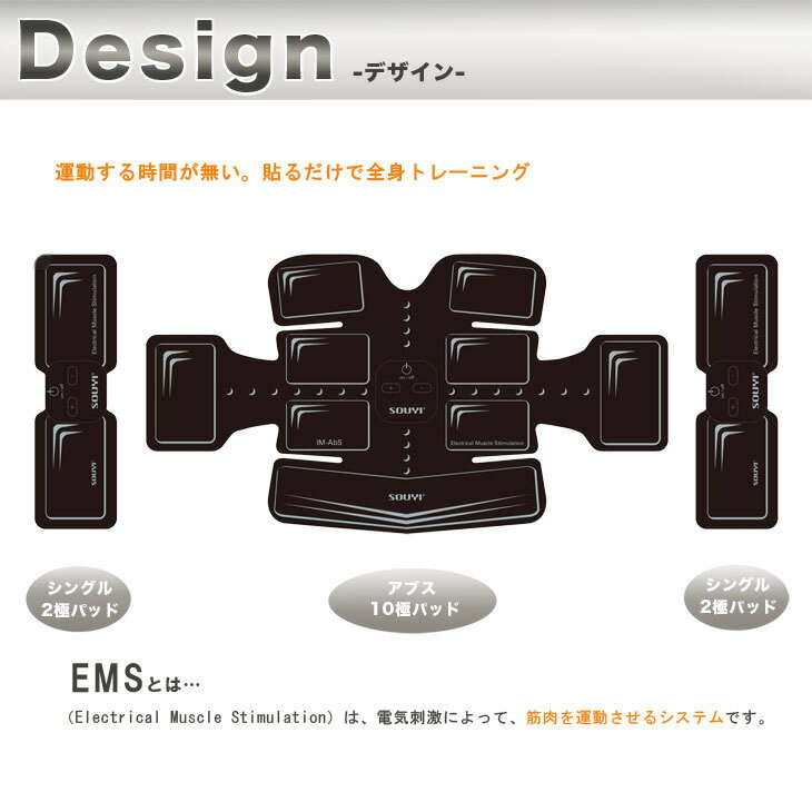 ▼他にもいろいろ時短家電▼ 忙しい日々の中で家事の時間を短縮し、自分の時間を作りたい! そんなお言葉にお応えして、便利で使い勝手のいい時短家電を品揃え! 是非ご覧ください! 商品情報 電源 USB電源(充電式) 電池 リチウムポリマー電池(3.7V) 本体サイズ 380x205mm(10極パッド)、50x186mm(2極パッド) 重量 約80g 充電時間 約1時間 連続使用回数 満充電20分を約10回可能 連続使用時間 約20分 材質 ABS樹脂、PET、PU 付属品 本体3個、充電用ケーブル3本、本体 関連キーワード 腹筋マシン・時短・お手軽・ブラック・腹筋器具 【季節の贈り物】 お年賀・迎春・お正月・年末年始・バレンタイン・ホワイトデー・卒業式・卒園式・入学式・入園式・母の日・父の日・御中元・お中元・暑中御見舞・残暑御見舞・敬老の日・ハロウィン・クリスマス・冬ギフト・お歳暮・御歳暮 【手土産・プレゼントに】 御祝・贈答品・ギフト・プレゼント・贈りもの メーカー希望小売価格はメーカーサイトに基づいて掲載していますトリプルパワー アクティブ・パッドEMS 14PAD BW-025 /筋トレ/EMS/二の腕/太もも/お腹/肩/刺激/トレーニング/ 楽して筋トレ。気になる二の腕やお腹周りなどに貼って電源を入れるだけ。 3つの充電池と14枚のパッドで効率よく筋トレ 気になる二の腕やお腹周りに太ももなどに貼って電源を入れるだけで簡単トレーニング。電気刺激により筋肉を運動させることにより、運動をしなくても勝手にトレーニングしてくれるナイスな商品。貼ったらテレビや読書を楽しんでいれば1回20分の運動で効率よく筋トレ。専用のジェルパッドは細かい繊維が入っており、より粘り強く粘着性に優れています。水分を含んでいるのでピリピリした刺激は少なくなっています。鍛えたい部分を集中トレーニング。アブス10極パッドでお腹周りを集中的に。シングル2極パッドで腕・肩・太ももなどを集中的にトレーニング。それぞれ充電池が装着できるのでハイパワーな電気刺激を送ることができます。 お腹と同時に腕や脚を同時に筋トレ 1回20分で動かずに筋トレ ジェルパッドは再度購入可能 楽して筋トレしたい方 忙しくてジムにいけない方 こっそり鍛えたい方 お腹周りや二の腕を効率よく筋トレでき、何より貼ってテレビや読書を楽しみながらあっという間に筋トレができちゃう優れもの。電気刺激は調整できるので最初は軽めで始めて慣れてきたらガンガン攻めてみましょう!替えのジェルパッドも当店で購入できます。 商品情報 電源 USB電源(充電式) 電池 リチウムポリマー電池(3.7V) 本体サイズ 380x205mm(10極パッド)、50x186mm(2極パッド) 重量 約80g 充電時間 約1時間 連続使用回数 満充電20分を約10回可能 連続使用時間 約20分 材質 ABS樹脂、PET、PU 付属品 本体3個、充電用ケーブル3本、本体 関連キーワード 腹筋マシン・時短・お手軽・ブラック・腹筋器具 【季節の贈り物】 お年賀・迎春・お正月・年末年始・バレンタイン・ホワイトデー・卒業式・卒園式・入学式・入園式・母の日・父の日・御中元・お中元・暑中御見舞・残暑御見舞・敬老の日・ハロウィン・クリスマス・冬ギフト・お歳暮・御歳暮 【手土産・プレゼントに】 御祝・贈答品・ギフト・プレゼント・贈りもの 1