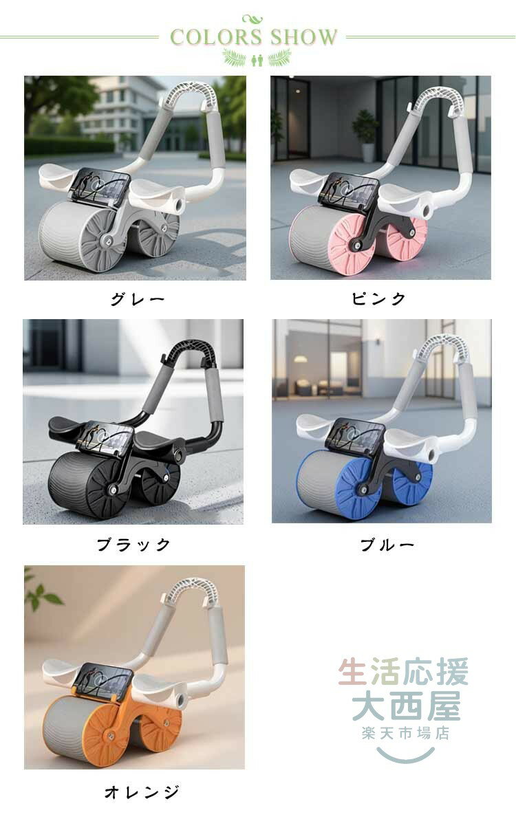 ■ 商品説明ジムに行きにくかったり、時間がとれない多忙な方や、自宅でエクササイズしたい方におすすめの腹筋ローラーです。アシスト機能付きで、身体を引き起こす動作をサポートします。■ 特徴本体前後に大型ローラーを搭載。左右にフラつかず、安定した往復トレーニングが可能です。高品質ノンスリップグリップで、手汗でも滑りにくくしっかり握れます。膝専用マット付属で、膝を痛めず快適に使用できます。■ サイズ約26*29*17cm■ 重量1.8kg■ ローラー幅約10cm■ 耐荷重150kg■ セット内容本体×1、膝専用マット■ 素材ABS、PVC■ カラーオレンジ、ブラック、ブルー、ピンク、グレー■ ご注意サイズや色味には若干の個体差が生じる場合があります。商品画像と実物の色合いが異なる場合がございます。生地の特性上、開封時に匂いを感じる場合がありますが、ご使用や陰干しで気にならなくなります。生産時期により仕様が変更される場合があります。