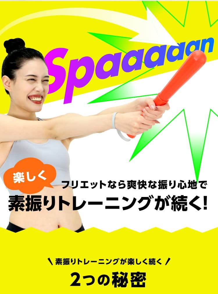 【商品サイズ】W4.3×D4.3×H37cm【材質】本体:ポリプロピレン、ステンレス鋼、鉄、天然ゴム、EVA/ストラップ:ABS,ポリエステル【重量】380g 腕を振り上げる素振りの動作は上腕三頭筋をエクササイズできるだけでなく、このフリエットにはスライドする重りとバネが内蔵されており、振るたびに重りの衝撃とバネの反動で筋肉にアプローチします。 重りのスライドによる「スパーン」とした爽快な音で楽しく二の腕エクササイズができるだけでなく、様々さ振り方をすることで脇肉、背中、胸など全身へのアプローチを目指す事ができます。 腕をトレーニングするためにダンベルやバーベルなど高負荷なトレーニングをされることが多いと思いますが、高負荷なトレーニングはケガのリスクも高くなります。 このフリエットは適度な負荷で効果的にエクササイズができる全く新しいエクササイズグッズになります。 フリエットを監修いただいたのは、プロアスリートからも信頼が厚いトレーナーかつ整体師でもあられる藤田淳士先生です。 フリエットを使った効果的なエクササイズプログラムも組んでいただきました。