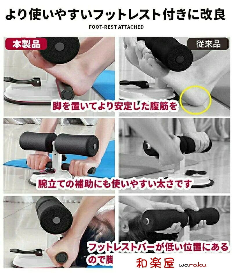 商品情報【商品名】腹筋マシーン マット付き シットアップ 足 固定 吸盤 マシン 腹筋 トレーニング 器具 エクササイズ フィットネス ダイエット 筋トレ グッズ 康器具 簡単 折りたたみ エコノミークラス 小型 ふくらはぎ 筋トレ 滑り止めい【注意事項】※モニター設定、照明等により実際の商品と色味が異なる場合がございます。※サイズについては生地の伸縮により誤差及びタグの表記とは異なる場合がございます。2-3cmの誤差はご容赦下さいませ。※商品発送後の住所変更は受け付けません。※万一汚れや破損などの不良品が届いた場合、必ず到着日を含め3日以内にご連絡をください。※当店は取り寄せ商品を販売しておりますなの、メーカー、仕入先の在庫保管方法の違いや、長距離輸送や航空輸送により、多少細かなキズ、汚れ等が見られる場合がございます。予めご了承ください。※初期不良品以外、イメージ、サイズや色の感じ違いの理由など、キャンセルや返品はお受けることができません。ご了承下さいませ。 指定された配送時間は承っておりません。【考福ショップ】