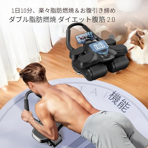 ◆商品名:【革新的な四輪設計】腹筋ローラー 四輪 腹筋ホイール 膝マット付き プロ 腹筋 ローラー 静音 高耐久性 組立簡単 トレーニング器具 エクササイズローラー トレーニング エクササイズ ストレッチ ダイエット 筋トレ 器具 男性/女性 初心者/上級者 腹筋マシーン 腹筋マシン (ブラック色)【より安定した四輪設計&静音&耐荷重200kg】革新的な四輪設計は腹筋ホイールの滑り止め設計に合わせて、騒音を減少させた上で、運動中の横揺れや転倒などによる不安を解消し、トレーニングをより安全で安心にします。耐荷重も200 kgにアップし、より多くの体重の方に合うようになりました。【自動スプリングバック・スマートブレーキ】この腹筋ローラーには自動リバウンド機能が搭載されており、手動で引き戻す手間が省け、トレーニング効率が向上し、初心者にも使いやすくなります。また、上級者が高強度のトレーニングをしたいというご要望に応じて、腹筋ローラーが前に転がる距離が大きいほど、蓄積された弾力が大きくなる設計を施しました。これにより、より強い抵抗を感じることができ、腹筋トレーニングの効果も期待できます。【回数・時間・消費カロリーが一目瞭然&Type-C対応】この腹筋ローラーには液晶ディスプレイが搭載されており、リアルタイムで回数、時間、消費カロリーを正確に表示することができます。これにより、いつでも自分の運動データを把握し、運動データに基づいてトレーニングの回数や強度を調整し、運動効率を高めることができます。また、Type-C充電にも対応しています。【スマホスタンド・膝マット付き&肘マットデザイン】この腹筋ローラーはスマホスタンドを内蔵しており、市場にある多くのスマホと互換性があり、運動しながら動画を観ることができます。肘を置く底部には厚みを増した柔らかいマットが設計されており、肘を保護しながら快適さを高めています。膝を保護するために、膝マットも付属しています。膝マットサイズ:365*275*15mm。【組み立てが簡単&3段階調節&サポート】製品本体にハンドルを差し込むことで素早く取り付けが完了し、初心者でも短時間で簡単に組み立てることができます。また、ハンドルの長さは3段階調節が可能です。場所を取らず、床を傷つけず、周りの方々に迷惑をかけず、自宅で手軽に使用できます。本製品には一年間メーカー保証が付いております。何かご不明・ご意見がございましたら、お気軽にご連絡いただければ幸いです。【自動スプリングバック・スマートブレーキ】この腹筋ローラーには自動リバウンド機能が搭載されており、手動で引き戻す手間が省け、トレーニング効率が向上し、初心者にも使いやすくなります。また、上級者が高強度のトレーニングをしたいというご要望に応じて、腹筋ローラーが前に転がる距離が大きいほど、蓄積された弾力が大きくなる設計を施しました。これにより、より強い抵抗を感じることができ、腹筋トレーニングの効果も期待できます。【より安定した四輪設計&静音&耐荷重200kg】革新的な四輪設計は腹筋ホイールの滑り止め設計に合わせて、騒音を減少させた上で、運動中の横揺れや転倒などによる不安を解消し、トレーニングをより安全で安心にします。耐荷重も200 kgにアップし、より多くの体重の方に合うようになりました。