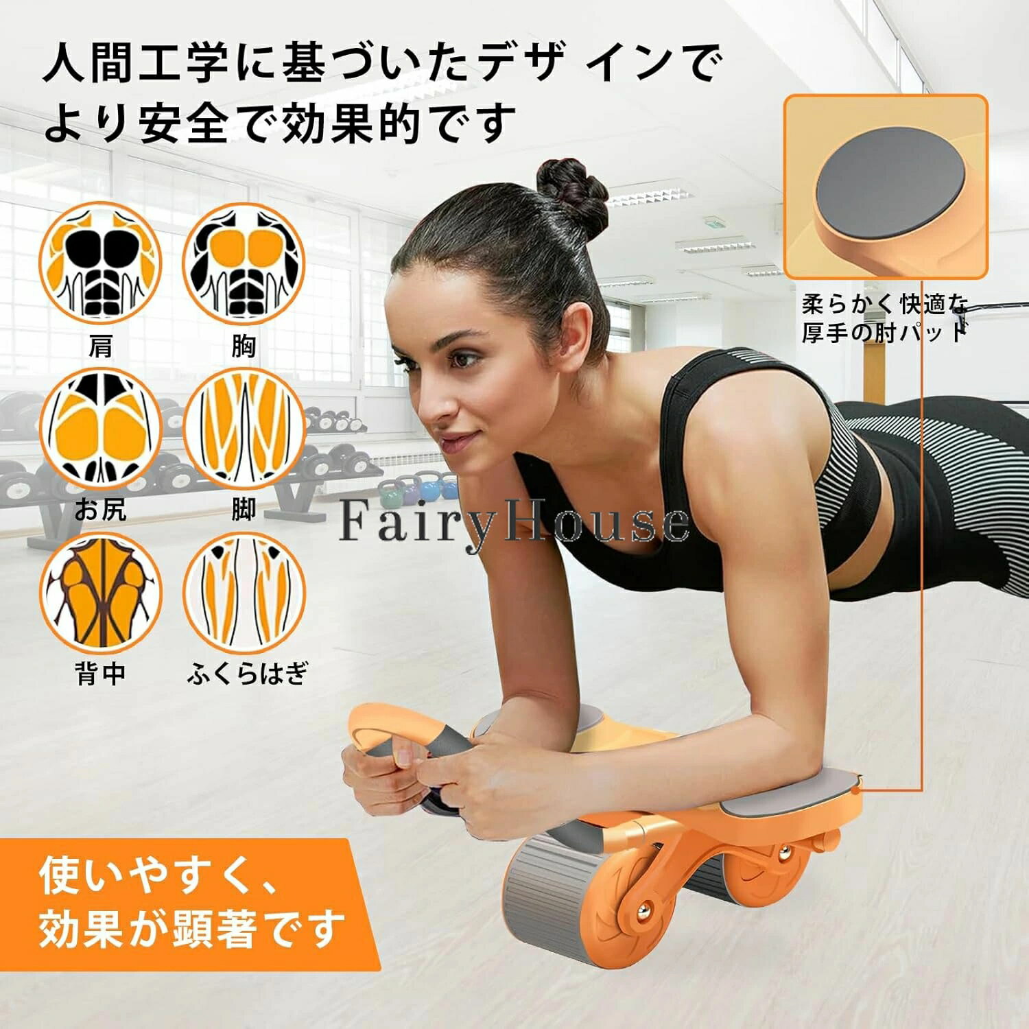 【商品コード】:y813812 【カラー】 ピンク、ブラック、オレンジ ピンク【電子ディスプレイなし】、ブラック【電子ディスプレイなし】、オレンジ【電子ディスプレイなし】、ピンク【電子ディスプレイ付き】、ブラック【電子ディスプレイ付き】、オレンジ【電子ディスプレイ付き】 原産国 : 中国 【この商品について】 自動リバウン設計で効率的なトレーニング 腹筋ローラーは自動リバウン機能付きで、筋力アップをサポートします。使用後、自動的に元の位置に戻るため、効率よく腹筋を鍛えることができます。 幅10cm×2の二輪設計を採用し、トレーニング中に優れた安定性を提供します。 体のバランスが向上し、より効果的なトレーニングが可能になります。 膝を守るマットと滑り止め付きハンドルが、安全性と快適性を高め、トレーニングに集中しやすくなり、トレーニング効果を最大化します。 初心者でも簡単に使用可能 自動回?機能により、初心者でも負担なくトレーニングが可能です。適切なフォームを保ちながら、無理なく効果的に腹筋を鍛えることができます。 巻き腹運動で理想的な腹部ラインを実現 ローラーを使用することで、腹部の筋肉をピンポイントで刺激し、腹筋を効果的に鍛え、引き締まった腹部を手に入れることができます。 省スペースで収納が簡単 コンパクトなデザインで、使用後に簡単に収納できます。家庭やオフィスでも場所を取らず、便利に使用可能です。 ※簡易包装となりますのでご理解の程よろしくお願いします。 ※手動測定による1〜3cmの測定偏差を許容してください。 ※モニターや光の効果が異なるため、実際の色は写真の色と若干異なる場合があります。 ※仕様・デザインは改良のため予告なく変更することがあります。【商品コード】:y813812 【カラー】 ピンク、ブラック、オレンジ ピンク【電子ディスプレイなし】、ブラック【電子ディスプレイなし】、オレンジ【電子ディスプレイなし】、ピンク【電子ディスプレイ付き】、ブラック【電子ディスプレイ付き】、オレンジ【電子ディスプレイ付き】 原産国 : 中国 【この商品について】 自動リバウン設計で効率的なトレーニング 腹筋ローラーは自動リバウン機能付きで、筋力アップをサポートします。使用後、自動的に元の位置に戻るため、効率よく腹筋を鍛えることができます。 幅10cm×2の二輪設計を採用し、トレーニング中に優れた安定性を提供します。 体のバランスが向上し、より効果的なトレーニングが可能になります。 膝を守るマットと滑り止め付きハンドルが、安全性と快適性を高め、トレーニングに集中しやすくなり、トレーニング効果を最大化します。 初心者でも簡単に使用可能 自動回?機能により、初心者でも負担なくトレーニングが可能です。適切なフォームを保ちながら、無理なく効果的に腹筋を鍛えることができます。 巻き腹運動で理想的な腹部ラインを実現 ローラーを使用することで、腹部の筋肉をピンポイントで刺激し、腹筋を効果的に鍛え、引き締まった腹部を手に入れることができます。 省スペースで収納が簡単 コンパクトなデザインで、使用後に簡単に収納できます。家庭やオフィスでも場所を取らず、便利に使用可能です。 ※簡易包装となりますのでご理解の程よろしくお願いします。 ※手動測定による1〜3cmの測定偏差を許容してください。 ※モニターや光の効果が異なるため、実際の色は写真の色と若干異なる場合があります。 ※仕様・デザインは改良のため予告なく変更することがあります。