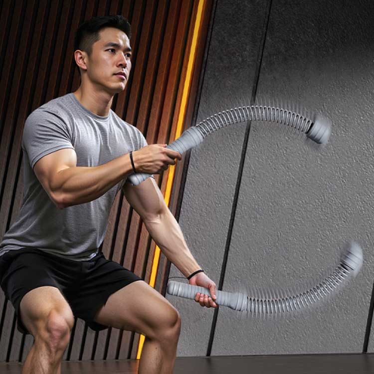 ロープ不要でどこでも使える、新感覚トレーニング器具 「ロープレスバトルロープ」。高反発スプリングを搭載し、安定した振動と反動で、腕・肩・背中・胸・脚・体幹まで全身をバランスよく鍛えられます。本体重量は約1.3kgの適度な負荷設計で、筋力トレーニングから脂肪燃焼、有酸素運動まで幅広く対応。短時間でも効率よく運動でき、運動不足解消やボディメイク、ダイエットにもおすすめです。●使いやすさ・耐久性も抜群・滑りにくいシリコングリップで長時間でも手が疲れにくい・防錆・防汗・耐食加工を施した高耐久スチール素材・肉厚スチールパイプ×高精度スプリングで変形しにくく安心設計●コンパクト&場所を選ばないコードレス・省スペース設計で、収納や持ち運びも簡単。自宅トレーニング、ホームジム、在宅ワークの合間、アウトドアや出張先でも活躍します。●多彩なトレーニングに対応・ウェーブ、クロスウェーブなど多彩な動きが可能・全身筋トレ、体幹強化、脂肪燃焼、ストレス発散、リハビリ運動にも◎・テレビを見ながらのスキマ時間トレーニングにも最適 サイズ 2本セット サイズについての説明 全長47cm 素材 PP TPR スチール 色 ブラック ピンク グレー 備考 ●サイズ詳細等の測り方はスタッフ間で統一、徹底はしておりますが、実寸は商品によって若干の誤差(1cm~3cm )がある場合がございますので、予めご了承ください。 ●製造ロットにより、細部形状の違いや、同色でも色味に多少の誤差が生じます。 ●パッケージは改良のため予告なく仕様を変更する場合があります。 ▼商品の色は、撮影時の光や、お客様のモニターの色具合などにより、実際の商品と異なる場合がございます。あらかじめ、ご了承ください。 ▼生地の特性上、やや匂いが強く感じられるものもございます。数日のご使用や陰干しなどで気になる匂いはほとんど感じられなくなります。 ▼同じ商品でも生産時期により形やサイズ、カラーに多少の誤差が生じる場合もございます。 ▼他店舗でも在庫を共有して販売をしている為、受注後欠品となる場合もございます。予め、ご了承お願い申し上げます。 ▼出荷前に全て検品を行っておりますが、万が一商品に不具合があった場合は、お問い合わせフォームまたはメールよりご連絡頂けます様お願い申し上げます。速やかに対応致しますのでご安心ください。