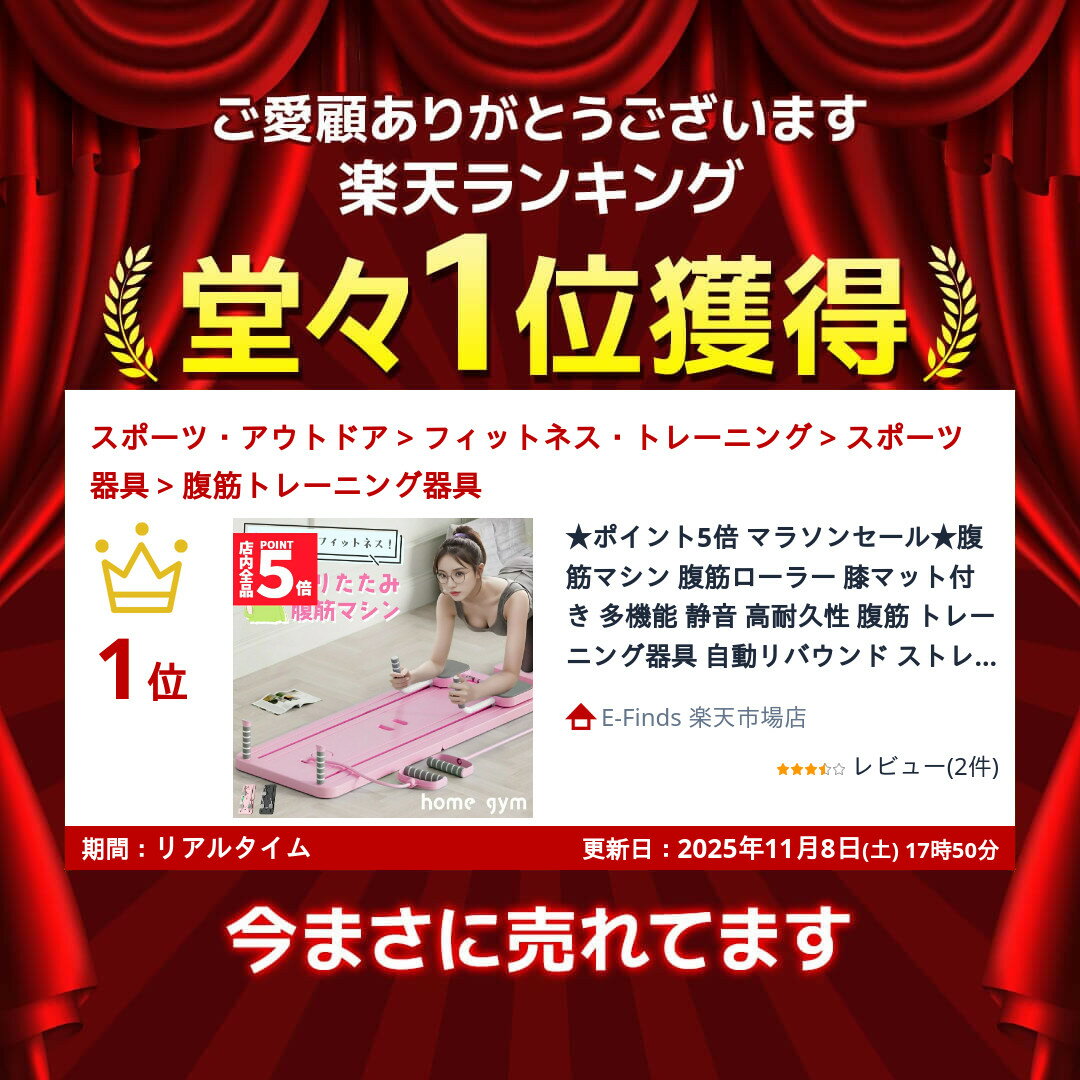 『自宅をホームジムに!』◎快適トレーニングマシン◎・初心者でも簡単にトレーニング!・上級者の本格トレーニングもOK!・見た目もおしゃれでやる気がでる!・理想の身体と健康維持に最適!【効果的で快適なトレーニング】自動リバウンド技術を採用していて、動作が滑らかで効果的です。反発力も強力で、余計な負担も少なくインナーマッスルも効率的に鍛えられます。フィットネスの初心者からアスリートまで、幅広くご使用することができ、理想の体型や健康のためのサポートをします。【多機能で全身トレーニング】1台で何役もこなす多機能なマシンなので、腹筋ローラーなどよりも幅広いトレーニングができます。腹筋だけでなく、インナーマッスルの強化、臀部、腹斜筋、腰部などさまざまな部位をトレーニングでき、体幹を整えるなど、幅広いトレーニングに対応できます。【安全に使用できます】バランスを崩すと危ない腹筋ローラー等よりも、安全に配慮して作られています。重いものを持ち上げたり、重器具でもないので、取り扱いしやすくスムーズで安全・快適にトレーニングに集中できます【静音で安心&高品質】環境にも配慮したPP素材で、さらに約130kgまでの負荷に耐えられ変形しにくくなっています。ご家庭でのトレーニングや筋トレに使われるかたも、静音で周りを気にせずトレーニングできます。初心者から上級者まで、ニーズにしっかり答えてくれるアイテムです。【タイマー&膝パッド付】2cm厚のTPE膝パッドと、スマートタイマーも付属していて、より快適にお使いいただけます。(0秒の状態で10分程度で自動OFF機能付き)膝パッドは本体と組み合わせて、より幅広い種類のトレーニングができます。【サイズ】・約106x41cm(展開時)・約51x41cm(折り畳み時)・重量:約4.8kg1セットの内容・マシン本体x1・ハンドル付きゴムバンドx2・ハンドルx2・スマートタイマーx1・膝パッドx1※日本語取扱説明書、撮影用小物類などは付属しておりません。※簡易包装でのお届けとなります。※モニターにより色合いが若干違いが生じる場合がございます。※デザインは入荷時期により若干変化する場合がございます※海外製造品のため、多少の匂い軽微な傷や汚れ、個体差等ある場合がございます。※商品の使用により生じた如何なる損害・被害も弊社では一切の責任を負いかねますので予めご了承ください。※発送方法について:お届け先、個数によって配送情報に記載の配送業者とは異なる場合がございます。日本郵便、佐川急便、またはセイノーエクスプレス(大型商品)でお届けいたします。なお、配送業者はお選びいただけませんので、ご了承ください。