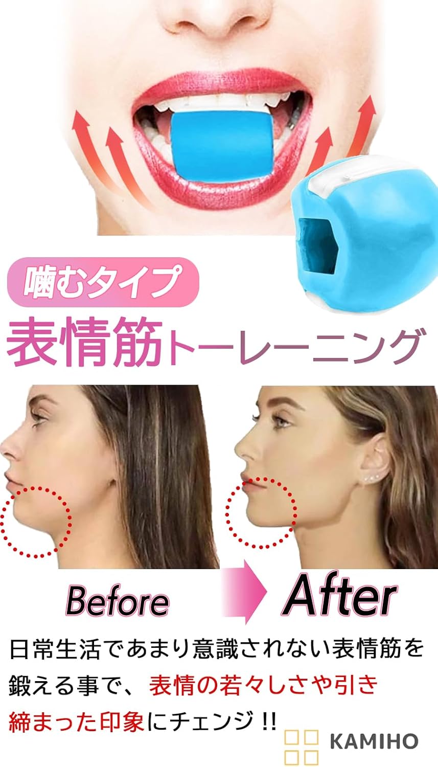 商品情報始め方:まず、リラックスした状態で座り、顔の筋肉が緊張していないことを確認します。両方の顎を使って、ゆっくりと力を入れて噛む動作を行います。普段の食事で使うような咀嚼ではなく、意識的に力を入れることが重要です。ゆっくりとしたリズムで咬筋に集中:む動作の際に、特に咬筋(こうきん)と呼ばれる顎の周辺に位置する筋肉に意識を集中させます。一定のリズムでゆっくりと噛むことが大切です。急いで噛むと、筋肉に十分な負荷がかかりません。繰り返し行う:噛む動作を数回(例:10回から20回程度)行い、短い休憩を挟んでセットを何セットか行います。噛むタイプの表情筋トレーニングは、日常生活であまり意識されない表情筋を鍛えることができます。表情筋を強化することで、顔の引き締め効果が期待され、表情の若々しさや引き締まった印象を与えることができるとされています。商品詳細:サイズ:長さ4.3cm幅3cm高さ3cmとなります。商品の扱いについてですが検品はしておりますが口に咥える商品となりますので使用前は必ず煮沸などしてからご利用ください。また使用後は個人により効果は様々となります。必ず商品画像のようになるわけではありませんのでご了承いただいた上でご購入ください。表情筋トレーニング 顔痩せグッズ【2025年末新型-1個入】顔ボール フェイストレーニング 二重あご解消グッズ 食品グレードのシリコン素材 無臭 耐熱性がありお手入れも簡単 軽量で持ち運びに便利 ロープ付き 男女兼用 表情筋トレーニング 小顔矯正 口角を上げるグッズ ほうれい線 トレーニング 5