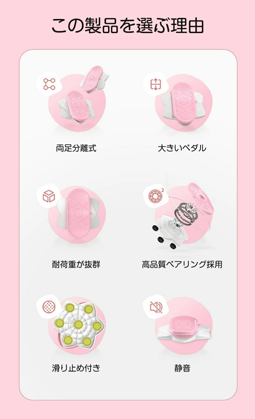 商品説明 商品仕様 商品名:ツイストボード カラー:ブラック、ピンク、ブルー、グリーン サイズ:29.5cm*13.5cm 重量:約1.8kg 耐荷重:約200kg 材質:ABS パッケージ内容:本体*1対(2個) 【使用簡単】 テレビを見ながら、音楽を聴きながらと「ながら」エクササイズができる。 【腰をひねってツイストスポーツ】 腰をひねるだけで簡単にツイスト運動ができるツイスター。 コンパクトサイズなので、場所を取らずに自宅で気軽にウエスト、脇腹を集中的にケアできます。 【毎日15分だけ】 脚全体にもエクササイズの効果が期待できます。隙間時間に重宝できるおすすめのアイテムです。また、壁や椅子に手をかけた状態で、体をねじることで腰周りのストレッチ運動をすることもできます。 【こんな方にオススメ】 エクササイズ、フィットネス、運動前のウォームアップ、運動後のリラックス 発送・在庫について 【発送について】 ●土日・祝日は休業日とさせて頂いております。 ●弊店は発送時間の指定を承っておりませんので、ご了承ください。 【在庫について】 ●ご注文頂くタイミングによっては、ホームページ上で在庫がある商品も欠品になる場合がございます。 ●入荷待ち/突然に在庫切れの商品に関しましては、別途メールにてご連絡差し上げます。 ●ご了承の上ご注文下さいます様お願い申し上げます。 ご注意 【注意事項】 ■商品のお色は撮影時の環境、ディスプレイの発色などにより実物と多少の違いが生じることがございます。 ■サイズは実際の商品とは多少の誤差が生じる場合がございます。あらかじめご了承ください。 ■製品アップデートにより、細部のデザインが予告なく変更される場合がございます。
