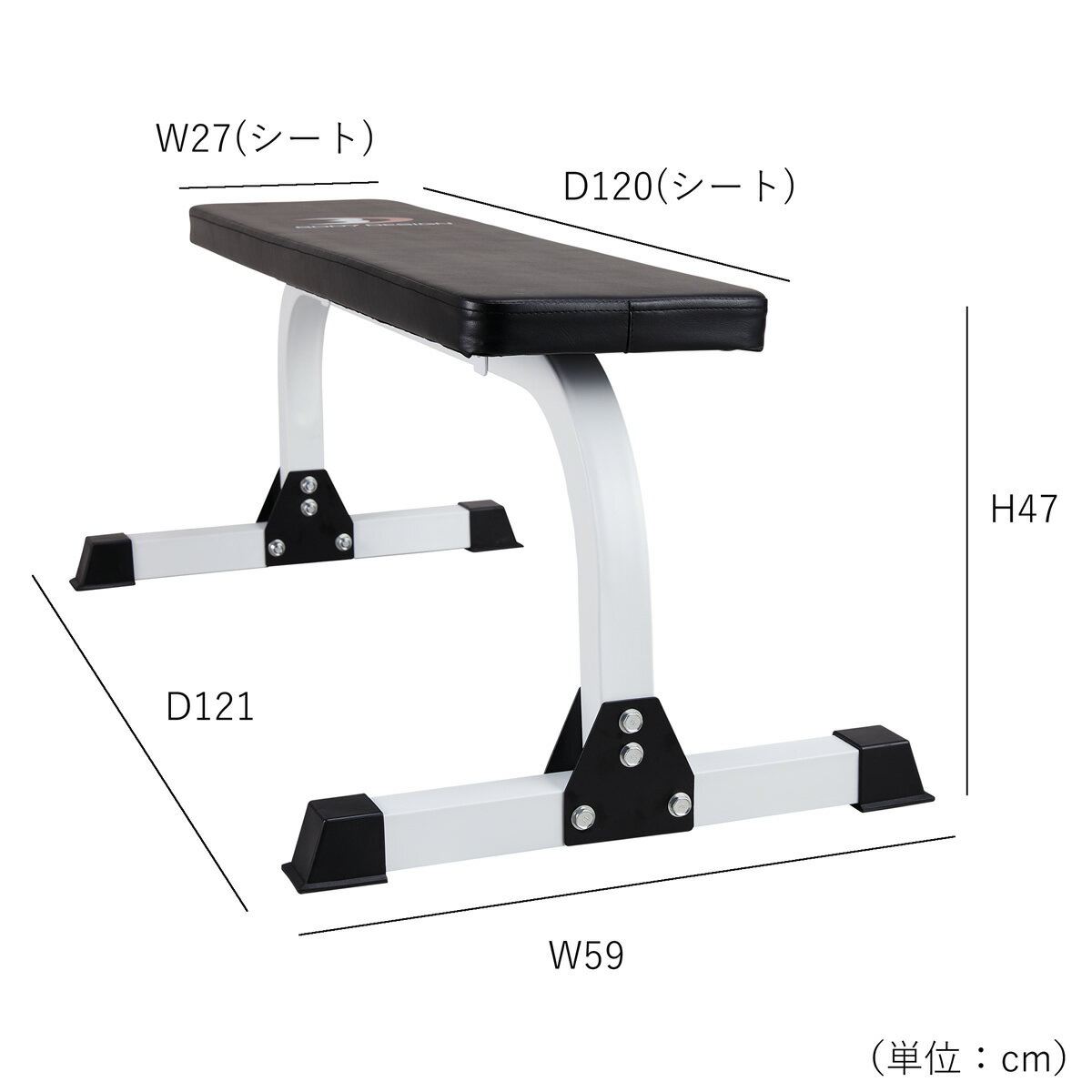 ■PRODUCT DESCRIPTION 極太フレームを採用し、優れた安定感・耐久性を実現。初心者の方から、上級者までレベルを問わずにご使用いただけます。 ■Specific 全体:W59×D121×H47cm シートサイズ:W27×D120cm 床面〜シート:H47cm 梱包サイズ:125×40×11cm 重量 / 梱包重量:11.4kg / 13.2kg 耐荷重量:200kg NOTES 付属の工具は簡易的なものです。スムーズな組立には別途ご用意ください。 ※モニターの発色具合によって実物と色が異なる場合がございます 【検索キーワード】フラットベンチ インクライン 筋トレ ダンベル トレーニング 大胸筋 三角筋 上腕筋 トレーニングベンチ ベンチプレス シットアップ インクラインベンチプレス バタフライ バーベルカール ダンベルカール レッグエクステンション レッグカール 筋トレ ベンチ トレーニング ウエイトトレーニング バーベル ダンベル コロナ太り ホームジム トレーニング器具 送料無料ダンベルトレーニングの基本ベンチ。フラットベンチDX ダンベル ダンベルカール 筋トレ ウエイトトレーニング ■PRODUCT DESCRIPTION 極太フレームを採用し、優れた安定感・耐久性を実現。初心者の方から、上級者までレベルを問わずにご使用いただけます。 ■Specific 全体 W59×D121×H47cm シートサイズ W27×D120cm 床面〜シート H47cm 梱包サイズ 125×40×11cm 重量 / 梱包重量 11.4kg / 13.2kg 耐荷重量 200kg CAUTION ・商品の受け渡しは玄関先までとなります。 ・商品を運ぶ際に梱包バンドを持たないでください。バンドが切れることがあり非常に危険です。 ・簡易的な工具が付属しております。(スムーズに組立を行いたい場合はラチェット等をご用意ください。) ・組み立てはお客様に行っていただきます。(組立サービス等は行っておりません。) ・商品の組立には危険が伴いますので必ず2人以上で十分注意して行ってください。 ・当商品は家庭用となります。不特定多数の方が使用になられる施設(スポーツジム・道場・学校・会社等)でのご使用はできません。 ・お届けした商品に初期不良、欠品等があった場合、部品等のお届けに2〜3日ほど日数がかかりますのでご了承ください。 ・一度組み立てを行った商品の返品はお受けできません。 ・お届けより7日以上経過した商品のクレームはお受け致しかねます。(7日以内に確認をお願いします。) ・商品改良等のため、予告なく形状、色、仕様が変更される場合があります。