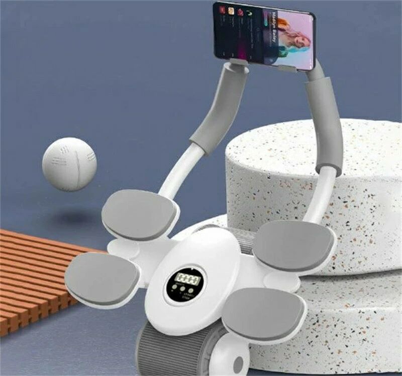 商品名 : 初心者/上級者 男性/女性 ダイエット 楽 自宅筋トレセット 静音 簡単 腹筋トレーニング器具 ダイエット器具 タイマー付き スマホスタンド付き アブローラー 2輪 肘置き付き アシスト機能 4個 と 膝マット マット付き 腹筋ローラー 静か 新型