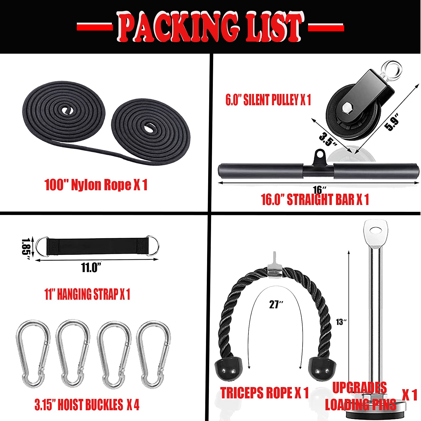 2つのエクササイズモード - ホイストバックルと高張力合金ケーブルの接続方法を変えることで、プルダウンとリフトアップの2つの機能的なエクササイズモードを利用できます。取り外し可能なハンドルにより、必要なアタッチメントを自由に変更できます(ストレートバーとトライセップロープが含まれています)。上腕二頭筋、上腕三頭筋、肩、背中のトレーニングが可能です。上腕二頭筋カール、上腕三頭筋プルダウン、ラットプルダウン、列、フライなど。プロフェッショナルコンポーネント - ケーブルの耐破壊性ボール設計と頑丈な合金バックルは、ロープの破損を防ぎ、適切な保護を提供します。含まれているプロのジムケーブルアタッチメント-ストレートバーとトライセップロープ。バーベルクランプ付きのアップグレードされたローディングピンは、標準またはオリンピックのウェイトプレートに適合します。最大重量は150kgまでです。プレミアム素材 - 2.5mの高強度調整可能シースケーブルが含まれています。ワイヤーロープの長さは身長に合わせて自由に調節できます。また、強度、耐久性、スムーズな走行を維持します。特殊な頑丈な鋼で作られたサイレントプーリーは、操作中に余分なノイズがないことを保証します。持ち運びが簡単 - ローディングピンをウェイトプレートの中央の穴に通して、セクションを接続するだけです。LATおよびリフトプーリーシステムは、パワーケージ、プルアップバー、ビーム、および吊り下げストラップを取り付けることができる任意の場所に接続できます。パッケージの体積が小さいため、どこにでも持ち運びでき、旅行に適しています。ブランドサポート - は、お客様の真のニーズに合わせて、ホームジムのフィットネス機器をアップグレードし続けています。この新しいLATおよびリフトプーリーシステムのアップグレードされたすべての設計は、顧客の提案から学びました。LATおよびリフトプーリーシステムについてご質問やご提案がございましたら、お気軽にお問い合わせください。