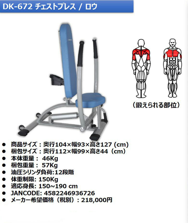 ダイコー 準業務用 油圧式マシン GYMシリーズ チェストプレス/ロウ DK-672 油圧 油圧式 フィットネスマシン トレーニングマシン サーキットトレーニング 筋トレ リハビリ 高齢者 機能訓練 健康管理 ダイコウ daikou 大広