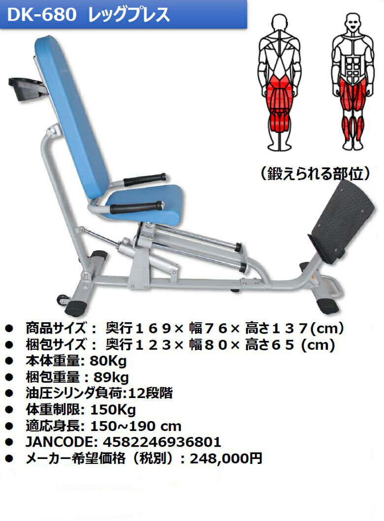 ダイコー 準業務用 油圧式マシン GYMシリーズ レッグプレス DK-680 油圧 油圧式 フィットネスマシン トレーニングマシン サーキットトレーニング 筋トレ リハビリ 高齢者 機能訓練 健康管理 ダイコウ daikou 大広