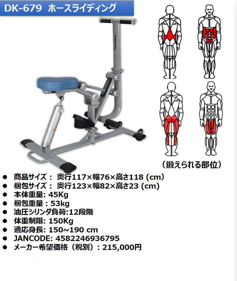 ダイコー 準業務用 油圧式マシン GYMシリーズ ホースライディング DK-679 油圧 油圧式 フィットネスマシン トレーニングマシン サーキットトレーニング 筋トレ リハビリ 高齢者 機能訓練 健康管理 ダイコウ daikou 大広