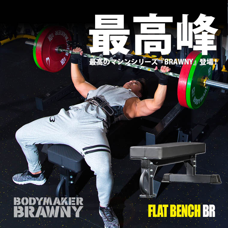 ●フラットベンチ BR【!最強クラスの耐久性と頑丈さを持つハイレベルマシン『BRAWNYシリーズ』が登場!】『BRAWNY=屈強』の名を持つハイモデルフラットベンチ。フレームサイズ直径75mm厚み3mmは、ジムレベルの高耐久フレーム。適度な弾力と強力なシートパッドを装着し、肩甲骨の動きを妨げずフォームの最適化を促します。ベンチプレスで使いやすいワンサイド1本足構造。フットキャップには安定性の高いラバー素材を用いています。フレームにハンドルとタイヤを設置しており、女性の方でも簡単に移動させる事が可能です。立てての収納する事が可能です。ブランドのシンボルロゴはレーザー加工仕様によりプレート部に刻印しています。■ご注意■※本商品はかなりの重量がある為、海外、国内を含め運送中に製品や箱の細かい傷や擦れはクレーム対象外とさせていただきます。予めご了承くださいませ。※箱から出したばかりのベンチシートは、輸送時の負荷でシートパッドに若干の変形やシワが見られる事がございます。こういった僅かな変形やシワは箱から出してしばらく時間が経過すれば自然に消えていきます。※この商品には簡易工具が付いております。スムーズに組み立てるにはモンキースパナ/レンチなどお客様にてご用意くださいませ。※本商品1カートンの届けになります。■サイズ:全長:約136cm全幅:約68cmシート全高さ:約44.5cm(国際パワーリフティング連盟での使用を満たすシート高さ)シート幅:約32cm(国際パワーリフティング連盟での使用を満たすシート幅)シート長さ:約120cmシート厚み:11cm■重量:約33kg 耐荷重量:約350kg●トレーニングマット(PVC)1.5m×1mマシンを使ったウエイトトレーニングなどには、どうしても振動がつきまとい、階下への影響が懸念されます。このマットの厚みは6ミリと従来のマットよりも厚め。これまで以上の防音性をもたらすだけでなく、マシンの滑り止めや床の保護、また、ダンベル等を置く時にも衝撃から床を守ります。ホームトレーニーをはじめ、様々な場所で利用できますが、ヘビーユーザーが集うジムや道場での使用にオススメしたいアイテムです。軽量なので、ヨガやストレッチなどのエクササイズにも最適。また、小さいサイズのPVCマットも登場。振動による音が周囲に伝わるのを最小限にします。この他、小型のフィットネス用品を使う際にも便利です。各種サイズがございますので、マシンに合わせてご利用頂く場合には、サイズにお気をつけくださいませ。■サイズ1.5m/L150×W100cm×T0.6cm■カラー:ブラック■素材:PVC■注意事項・簡易工具のみ付属しております(スムーズな組立にはラチェットやモンキーレンチ等をお客様でご用意願います)・配送時の商品の受け渡しは玄関先までとなります。・組立はお客様ご自身で行っていただきます。・組立には危険が伴いますので必ず2名以上で十分注意して組立を行ってください。・組立の際には一通りのボルト及びナットを工具を使わず「仮止め」にて組み上げていただき、ボルト及びナットが全てセッティングされた後に 工具を使用して土台もしくは下部分より「本締め」を行って下さい。・出張組立てご希望の場合は別途見積もり致します。(出張組立費55000円+往復交通費+諸経費)・当製品は家庭用の為、不特定多数の方がご使用になられるスポーツジム・道場・会社等でのご使用は出来ません。 なお、家庭用以外でお使いの場合は、保証の対象なりません。予めご了承ください。・お届けした製品に万が一、初期不良および欠品等があった場合、部品などのお届けに2〜3日ほど日数がかかりますのでご了承ください。・お届けより7日間を経過した場合のクレーム等は、お受け致しかねます。(ご到着後7日以内に商品のご確認をお願いします)・一度、組立を行った商品の返品は一切お受け致しません。・お客様ご自身で当製品を改造された場合はいかなる理由があっても返品・交換・対応はお断りをしております。・改良等により、予告なく商品の形状、色、仕様が変更する場合がございます。・パーツ内部に加工過程で使用する砂鉄が残留するケースがございますが、使用には影響ございません。 不良ではございませんので安心してご使用ください。(はじめの組み立ての際に砂鉄がこぼれ落ちるケースがございますので、予めご了承下さいませ。)※入荷時期によりマットのロゴが黒のエンボスに変更される場合がございます。配送料 ¥5610→送料無料最高峰『BRAWNYシリーズ』登場!『BRAWNY=屈強』の名を持つハイモデルフラットベンチ。ジムレベルの高耐久フレーム。バーベルやダンベルトレーニングに重厚感あるマットブラック高重量を支える厚さ3mm極太フレーム。ジムレベルの高耐久フレーム使いやすいワンサイド1本足構造。フレームにハンドルとタイヤを設置しており、女性の方でも簡単に移動できます。適度な弾力と強力なシートパッドを装着し、肩甲骨の動きを妨げずフォームの最適化を促します。フットキャップには安