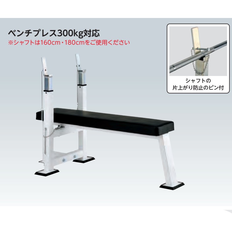 300kgまで対応しているベンチプレス台 品 番:ETB697 サイズ:長さ130.5cm×幅66cm×高さ68〜98cm 重 量:35kg 生産国:日本 入 数:1台 5cm間隔7段階高さ調節 シャフトは160cm、180cmをご使用下さい。 シャフトの方上がりを完全に防止するものではありません。類似商品はこちらベンチプレス BD ETB725 トレーニング50,200円フラットベンチ EV ETB798 トレーニン99,390円ワイドベンチ補助スタンド付 ETB698 トレ212,250円受注生産 プリチャーカールベンチ ETB324152,440円受注生産 マルチラックベンチ ETB378 ト210,790円受注生産 アジャスタブルベンチ SA ETB8227,370円受注生産 パワーラック DX ETB525 ト235,100円受注生産 パワーラック ST ETB524 ト155,950円受注生産 アブベンチ ETB799 100×457,180円新着商品はこちら2026/1/23チョーク 石花マーキングチョーク 24本箱入 2,160円2026/1/23チョーク スーパーウェットマーカー 12本箱入3,190円2026/1/23墨汁 無塩ハイパー墨汁 朱液 S19103 16,500円再販商品はこちら2026/1/21そり サンコー ジャンボスレー 大 1360×15,950円2026/1/20ドリル用 アタッチメント BSインパクトドライ6,070円2026/1/17ケース 盆栽セット用ケース 巻物 Aタイプ 14,380円2026/01/23 更新300kgまで対応しているベンチプレス台!