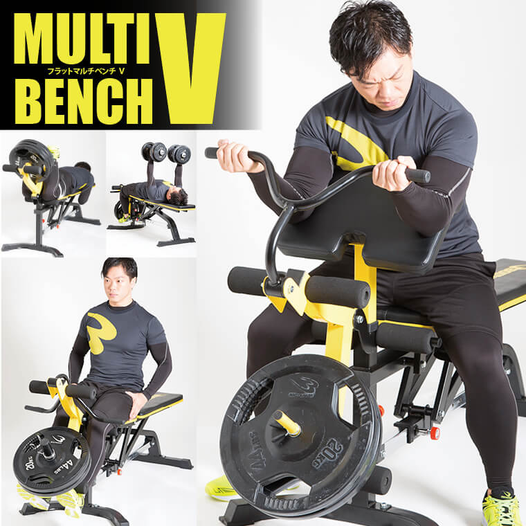【セット内容】フラットマルチベンチ Vトレーニングマット(PVC) 2m×1m●フラットマルチベンチ Vレッグエクステンションベンチ・インクラインベンチ・フラットベンチ・プリチャーカール・バタフライがダンベルを利用しての本格的なトレーニングができます。■サイズ:約H123×W74×D184cm■フラット時の座面高さ:シートの下の面から床までの高さ約49cm■カラー:ブラック×イエロー■重量:約30kg■素材:スチール【決済】※大型商品につき代金引換ができません。代金引換で注文された時は弊社よりお支払方法変更の連絡をします。クレジットカードでのお支払いをおすすめします。(手数料不要)※海外輸入品のため多少のキズがある場合がございます。※運送中の重みによりシートに少し凹みが見られる場合がございますが時間を置くと元に戻ります。※本商品耐荷重:約150KG●トレーニングマット(PVC) 2m×1mマシンを使ったウエイトトレーニングなどには、どうしても振動がつきまとい、階下への影響が懸念されます。このマットの厚みは6ミリと従来のマットよりも厚め。これまで以上の防音性をもたらすだけでなく、マシンの滑り止めや床の保護、また、ダンベル等を置く時にも衝撃から床を守ります。ホームトレーニーをはじめ、様々な場所で利用できますが、ヘビーユーザーが集うジムや道場での使用にオススメしたいアイテムです。軽量なので、ヨガやストレッチなどのエクササイズにも最適。また、小さいサイズのPVCマットも登場。振動による音が周囲に伝わるのを最小限にします。この他、小型のフィットネス用品を使う際にも便利です。各種サイズがございますので、マシンに合わせてご利用頂く場合には、サイズにお気をつけくださいませ。■サイズ2.0m/L200×W100cm×T0.6cm■カラー:ブラック■素材:PVC■注意事項・簡易工具のみ付属しております(スムーズな組立にはラチェットやモンキーレンチ等をお客様でご用意願います)・配送時の商品の受け渡しは玄関先までとなります。・組立はお客様ご自身で行っていただきます。・組立には危険が伴いますので必ず2名以上で十分注意して組立を行ってください。・組立の際には一通りのボルト及びナットを工具を使わず「仮止め」にて組み上げていただき、ボルト及びナットが全てセッティングされた後に 工具を使用して土台もしくは下部分より「本締め」を行って下さい。・出張組立てご希望の場合は別途見積もり致します。(出張組立費55000円+往復交通費+諸経費)・当製品は家庭用の為、不特定多数の方がご使用になられるスポーツジム・道場・会社等でのご使用は出来ません。 なお、家庭用以外でお使いの場合は、保証の対象なりません。予めご了承ください。・お届けした製品に万が一、初期不良および欠品等があった場合、部品などのお届けに2〜3日ほど日数がかかりますのでご了承ください。・お届けより7日間を経過した場合のクレーム等は、お受け致しかねます。(ご到着後7日以内に商品のご確認をお願いします)・一度、組立を行った商品の返品は一切お受け致しません。・お客様ご自身で当製品を改造された場合はいかなる理由があっても返品・交換・対応はお断りをしております。・改良等により、予告なく商品の形状、色、仕様が変更する場合がございます。・パーツ内部に加工過程で使用する砂鉄が残留するケースがございますが、使用には影響ございません。不良ではございませんので安心してご使用ください。(はじめの組み立ての際に砂鉄がこぼれ落ちるケースがございますので、予めご了承下さいませ。)※入荷時期によりマットのロゴが黒のエンボスに変更される場合がございます。配送料 ¥5,610→送料無料※北海道はプラス¥3300※フラットは完全フラットではございません。トレーニング例(1)アームカール…ベンチ本体に付属しているハンドルを使用することで適正なフォームで上腕二頭筋を鍛えることが出来ます(2)レッグカール…ハムストリングスを鍛えることが出来ます。ハムストリングスとは大腿二頭筋、半腱様筋、半膜様筋の3つの筋肉で構成されています。(3)レッグエクステンション…大腿四頭筋を鍛えることが出来ます。筋肉の中で最も大きい筋肉が大腿四頭筋です。大腿四頭筋を鍛えれば筋肉量を効率よく増やせますのでダイエットをする方は大腿四頭筋を中心に鍛え基礎代謝を向上させたい方はオススメの部位です。(4)ダンベルフライ…デクラインの角度でも行えます。主に大胸筋を鍛える事が出来ます。お客様の声 ゆめポケットスポーツクラブ様 レッグカール、レッグエクステンションができる器具が一台欲しかったので、この器具は重宝します。またポジションを変えてできるのも一つの魅力であり、お客様の目を引く部分です。アスリート利用が多い弊店では欠かせない器具の一つになっております。※商品の色につきまして生産時期やサイズにより多少の色の違いが生じる場合がございます。また商品写真はできる限り実物の色に近