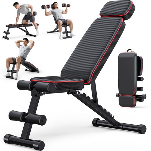 トレーニングベンチマルチシットアップベンチ折り畳み耐荷重350kgフラットベンチ筋トレ角度調節簡単腹筋背筋ダンベルベンチ収納便利-CFBH(赤)