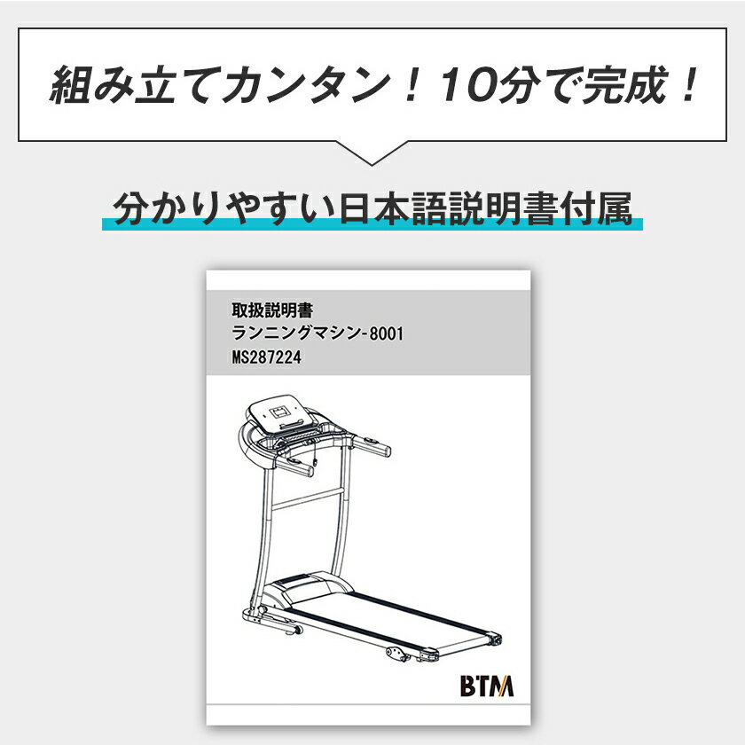 商品名 : 電動ランニングマシン ルームランナー MAX12km/h BTM マット付き フィットネスマシーン ダイエット器具 有酸素運動 静音 折りたたみ 家庭用 トレッドミル エクササイズ 衝撃吸収 室内運動 健康器具
