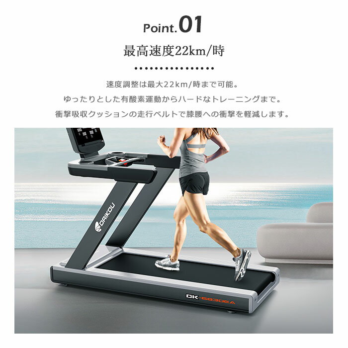 商品名 : 《大広|DAIKOU》準業務用トレッドミル ルームランナー ランニングマシン ウォーキング ランニング キャスター 自動プログラム Bluetooth 角度調整 トレーニング 健康 有酸素運動 dk-6830ea