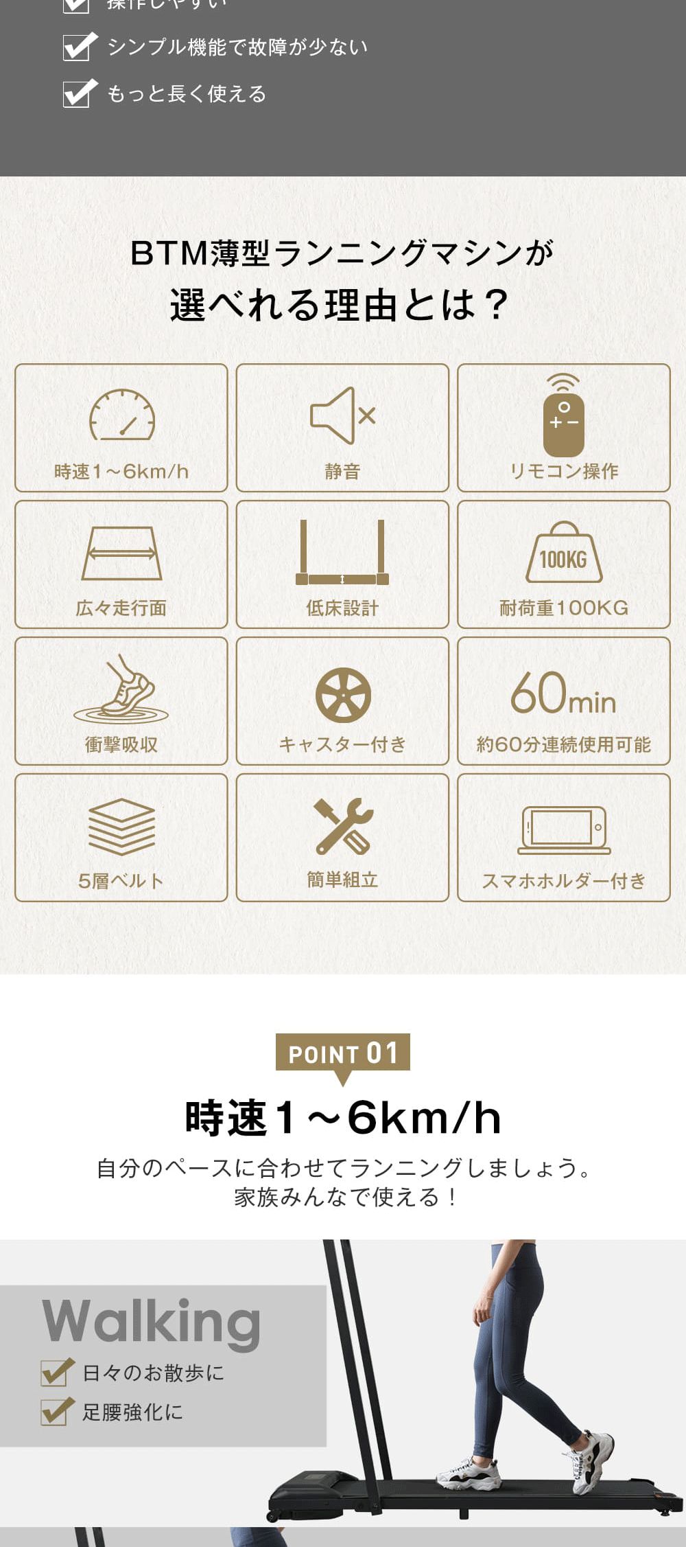 【ブラック再入荷】電動ランニングマシン ルームランナー 折りたたみ 家庭用 低床設計 MAX6km/h BTM 3色 ミント ピンク 薄型 シンプル オシャレ ダイエット器具 有酸素運動 静音 エクササイズ 衝撃吸収 室内運動 健康器具