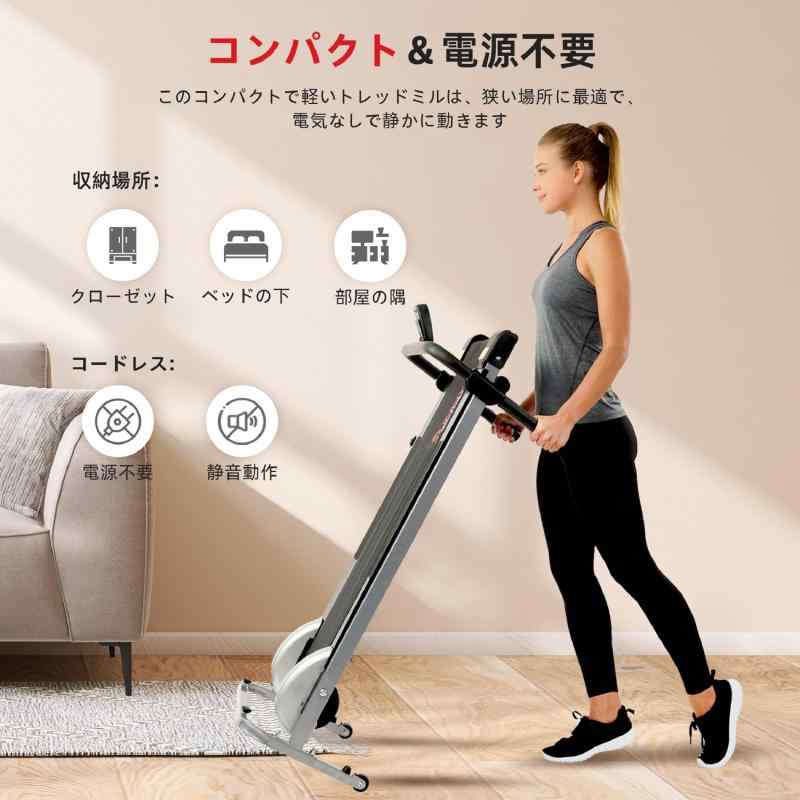 サニーヘルス&フィットネス(Sunny Health & Fitness) 折りたたみ式トレッドミル マニュアルコンパクトミニトレッドミル グレー ウォーキングランニングマシン 電源不要 自宅オフィス用の有