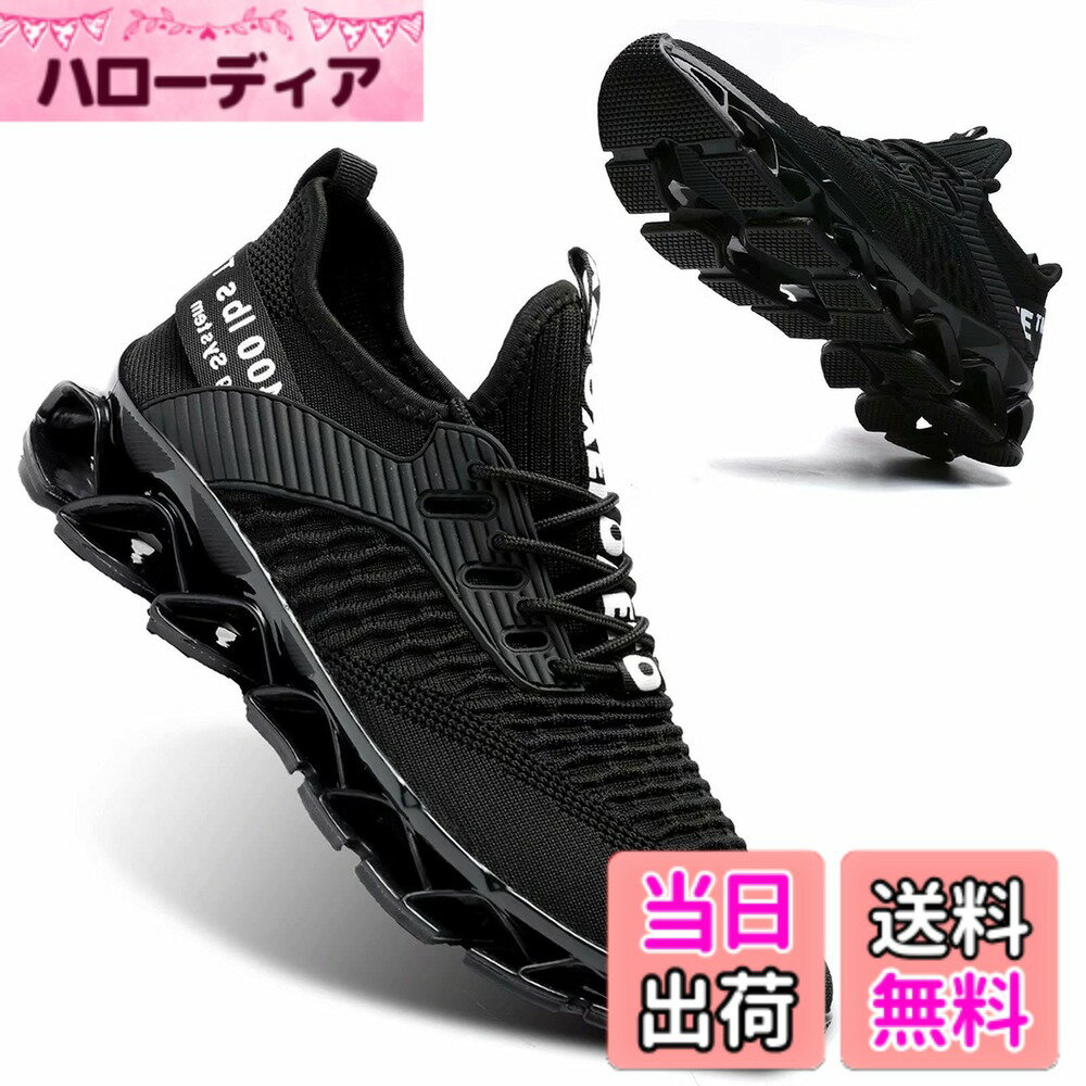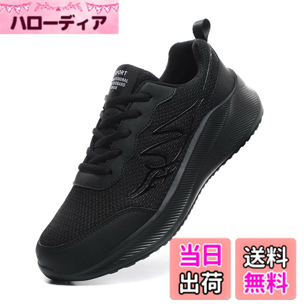 [Huaniun] スニーカー メンズ 厚底 軽量 ランニングシューズ 通気 スポーツシューズ ウォーキングシューズ 靴 運動靴 幅広 ブラック 24.5cm