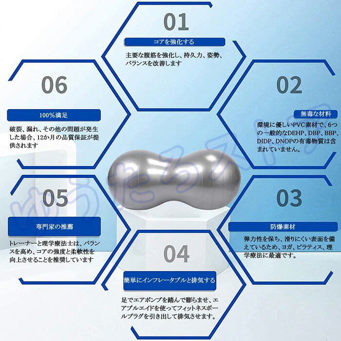 商品名 : バランスボール バランスボール 椅子 ピーナッツ型 ヨガボール ヨガトレーニング ヨガ エクササイズボール ジム リハビリ ダイエット フィットネス 空気入れ付き