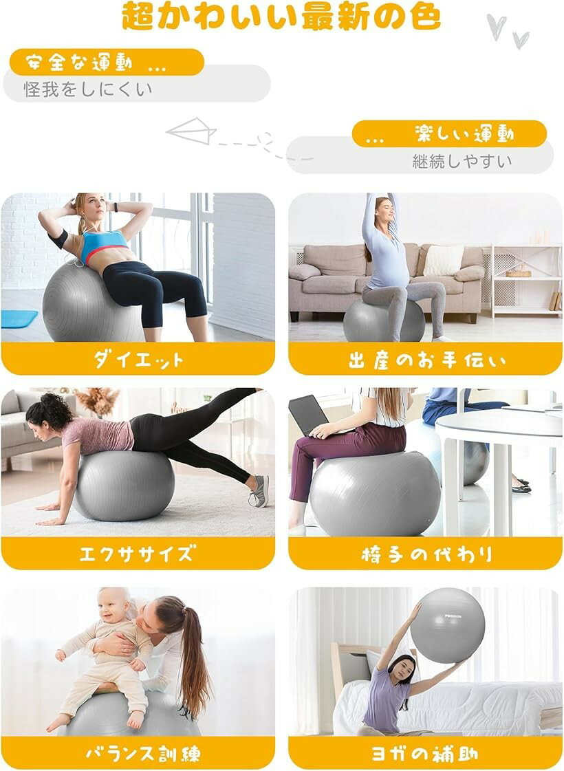 バリエーションコード : 2b8wlin9lg商品コード2bjwh4cf5d商品名バランスボール ばらんすぼーる 75cm 厚い ジムボール フィットネスボール アンチバースト 耐荷重300kg ハンドポンプ付 グレー 75cm/LブランドPROIRONカラーグレーサイズ等68-75cm/ L「上質で耐久性のある素材」PROIRONのバランスボールは、高品質な厚さ2mmのPVCで作られ、耐久性と快適性を兼ね備えています。6つのおしゃれな色から選ぶことができます。さらに、使用しやすいハンドポンプも同梱されております。「SGS認証取得」滑り止め、真の爆発防止性を備え、安全にご使用いただけます。「腰痛緩和」一日中椅子に座ることによる体の不調や腰痛を感じていませんか?PROIRONバランスボールを選ぶことで、オフィスチェアの代わりとなり、簡単に運動不足を解消することができます。また、ダイエットにもおすすめです。「多目的利用」バランスボールは、楽しみながらエクササイズできる道具として人気があります。オフィスチェアとして、ヨガやピラティスのトレーニングボールとしても活用できます。また、リハビリや回復、産後ケアにも役立ち、ストレス軽減や心身の健康促進に寄与します。※ 他ネットショップでも併売しているため、ご注文後に在庫切れとなる場合があります。予めご了承ください。※ 品薄または希少等の理由により、参考価格よりも高い価格で販売されている場合があります。ご注文の際には必ず販売価格をご確認ください。※ 沖縄県、離島または一部地域の場合、別途送料の負担をお願いする場合があります。予めご了承ください。※ お使いのモニタにより写真の色が実際の商品の色と異なる場合や、イメージに差異が生じることがあります。予めご了承ください。※ 商品の詳細(カラー・数量・サイズ 等)については、ページ内の商品説明をご確認のうえ、ご注文ください。※ モバイル版・スマホ版ページでは、お使いの端末によっては一部の情報が表示されないことがあります。すべての記載情報をご確認するには、PC版ページをご覧ください。「サイズ」55cm:1kg、65cm:1.2kg、75cm:1.4kg「荷重耐性」300kg「素材」PVC