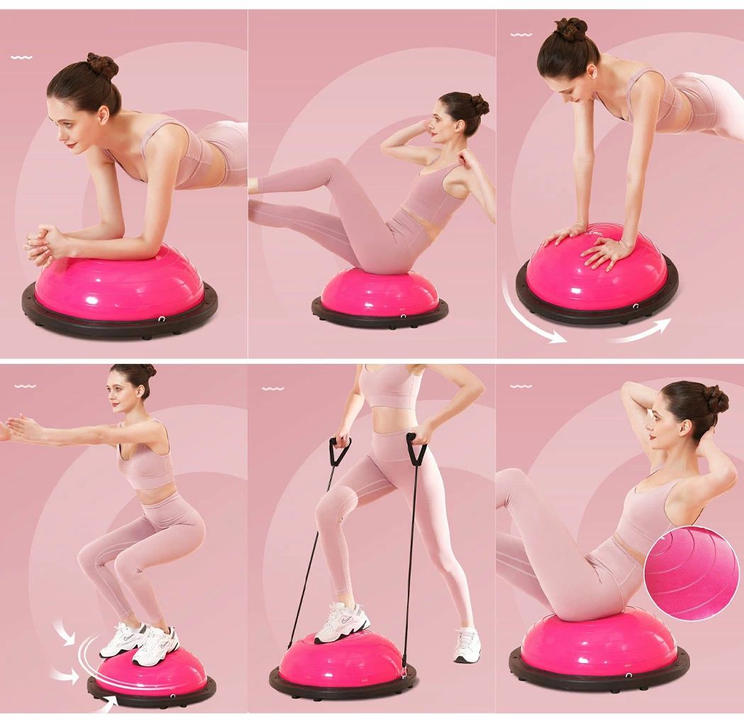 商品名 : バランスボール 半円型 半円 バランスドーム 半球 体幹トレーニング インナーマッスル 鍛える ヨガ ストレッチ コアトレーニング エクササイズ 耐荷重150kg ラリーコード付き 空気入れ付き 腹筋 健康器具 宅トレ