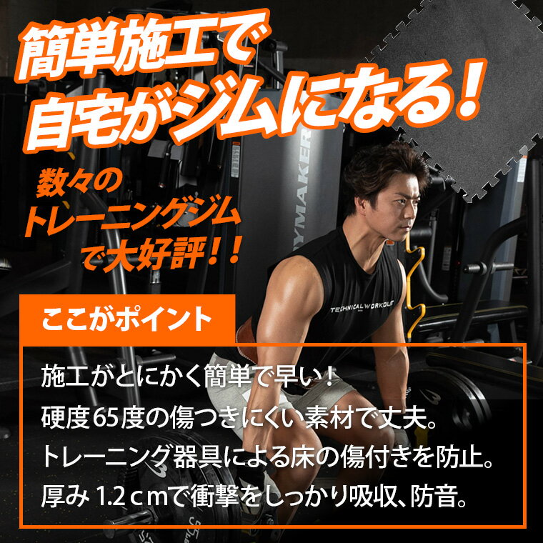 商品名 : ジョイント式マット60cm 硬質タイプ BODYMAKER ボディメーカー ホームジム ジョイントマット ラバーマット ゴムマット トレーニングマット フロアマット トレーニング エクササイズ 筋トレ 防音 転倒 保護 防音対策 床 傷防止