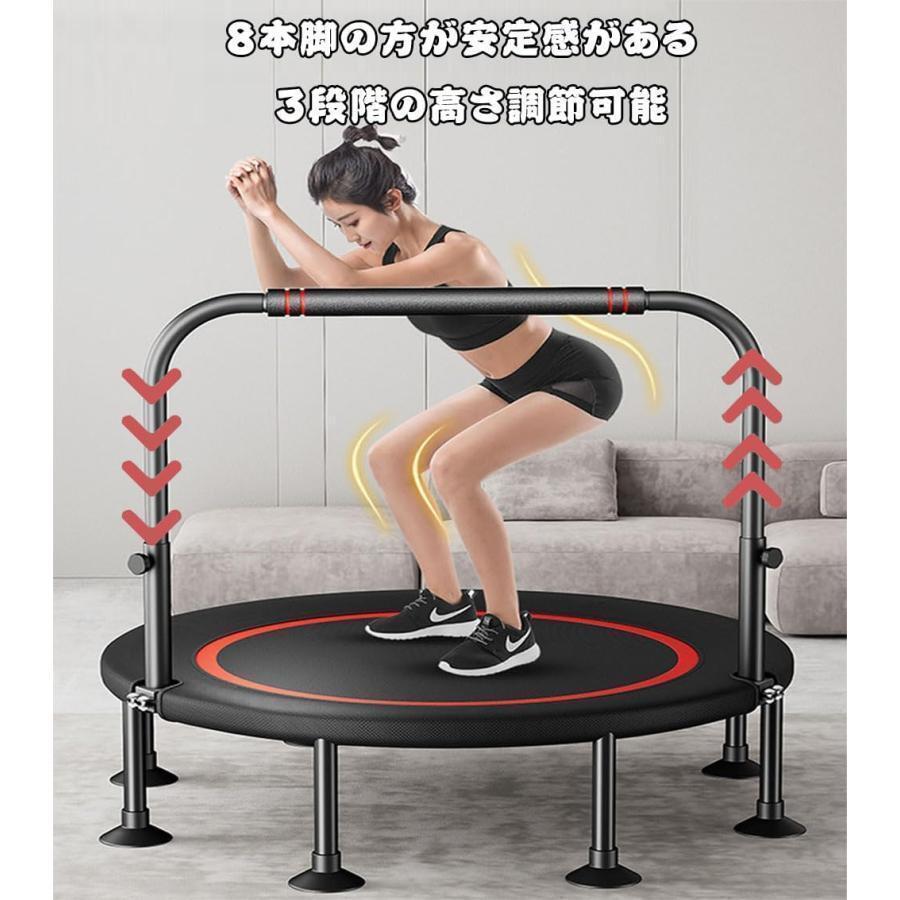 トランポリン 室内 八本足子供大人兼用 手すり3段階調節 トレーニング エクササイズ あそび 家庭用 耐荷重300kg 折りたたみ式 収納便利 組み立て簡単 耐久性高い
