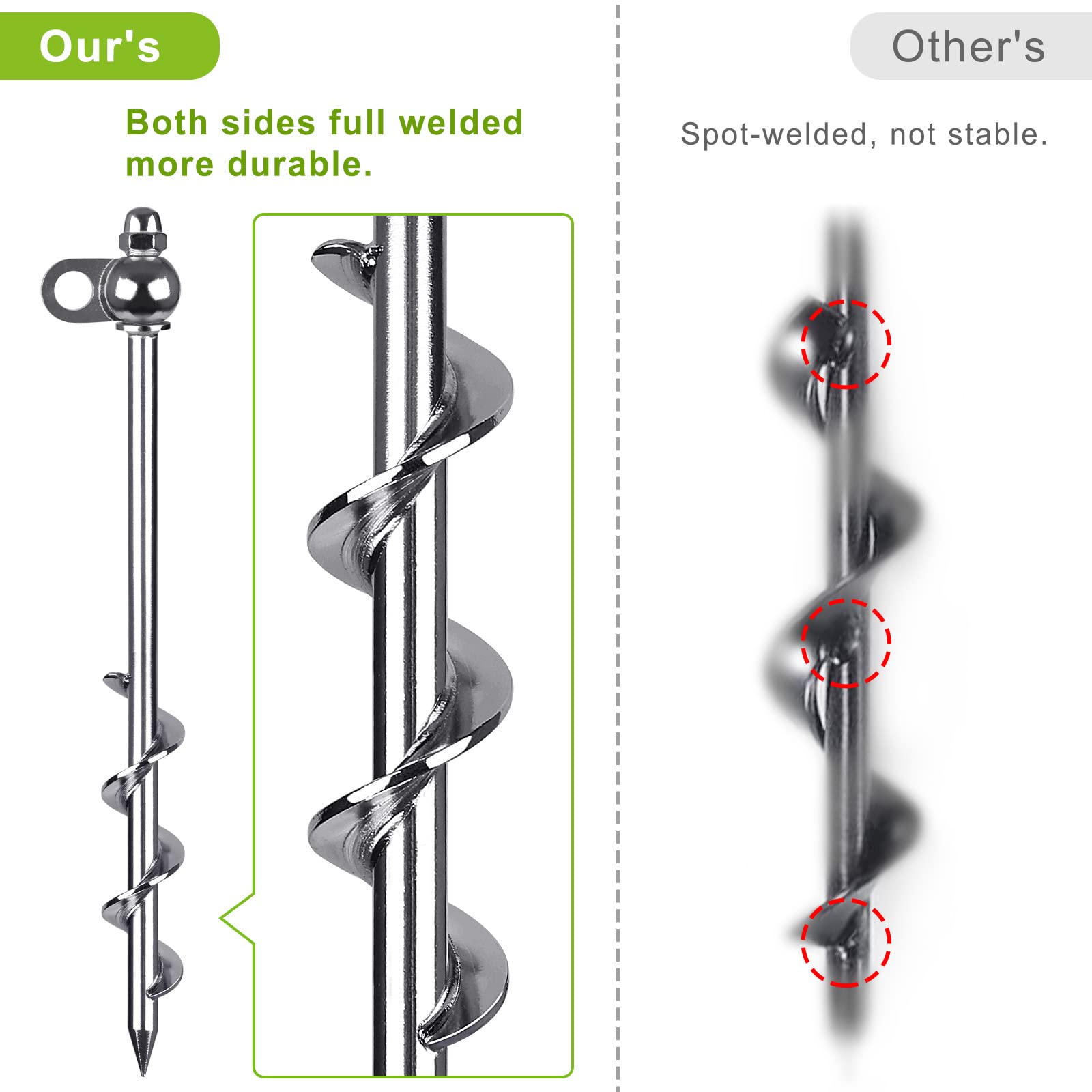 【高耐久アースアンカー】このグラウンドアンカーキットは、クロム仕上げの高品質のスチール製で、丈夫で耐久性があり、損傷や錆びにくいです。 強風に耐え、テントを安定して安全に保ちます。【安定性と信頼性】スパイラルアンカーピースは長さ5インチで、スパイラル接続部で完全に溶接されています。硬い土や岩の多い土に簡単に突き刺さり、トランポリンをしっかりと握ることができます。【取り付けと取り外しが簡単】ドリルでスパイラルアンカーを地面に簡単にねじ込み、不要なときに再度ねじ込むことができます。 数分で取り付けることができ、時間と労力を節約できます。【幅広い用途】キャンプテント、トランポリン、小屋、ブランコセット、ペットハウス、木、フェンスなどの固定に使用できる汎用性の高いグラウンドステーク。 アウトドア活動やホームリフォームプロジェクトに最適です。【100%満足保証】何らかの理由で不満がある場合は、30日以内に返品してください。のカスタマーエクスペリエンスに満足していただけるよう、当社は常に上を行き来します。 米国特許出願中。 無断複写?転載を禁じます。