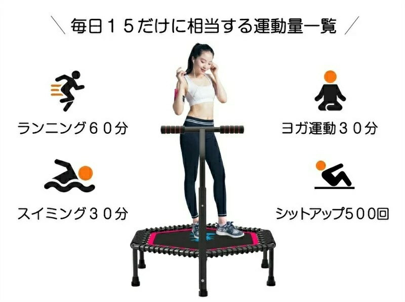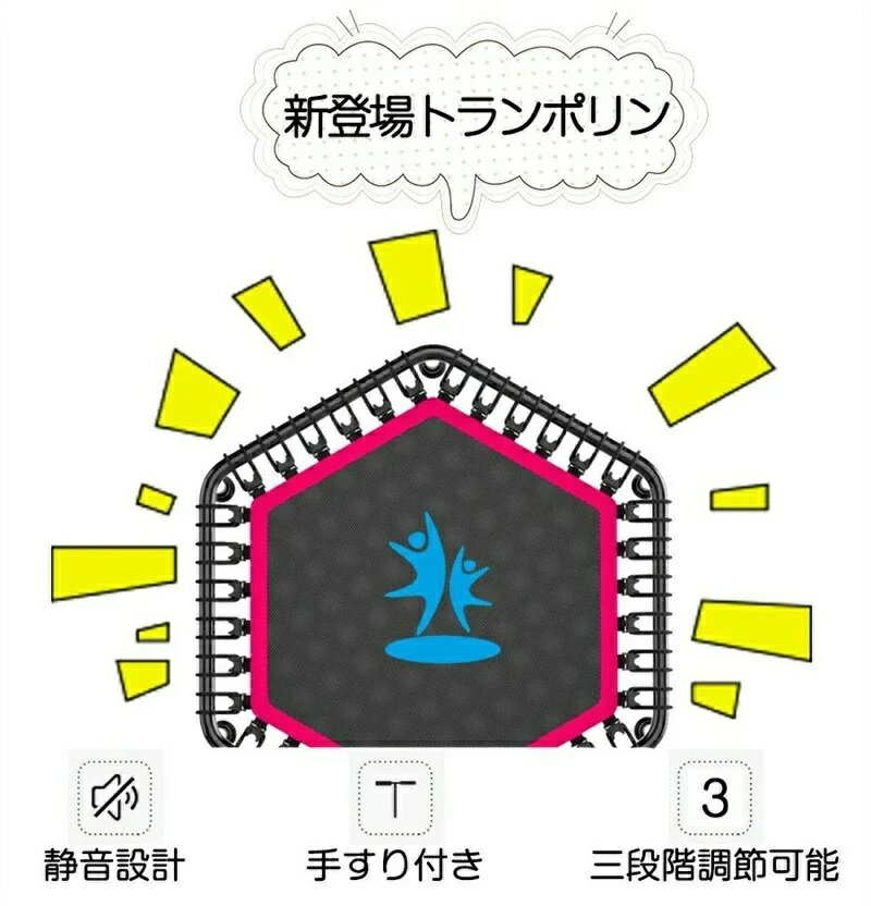 商品名 : トランポリン 家庭用 手すり付き 子供用 大人用 ダイエット 6本足 全鋼構造 静音設計 高弾力 子供大人兼用 手すり 3段階調節 トレーニング エクササイズ あそび 家庭用 耐荷重200/300kg 収納便利 組み立て簡単 耐久性高い 室内室外兼用 スポーツ アウトドア