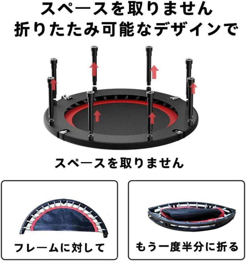 商品名 : トランポリン 室内 八本足 子供大人兼用 手すり3段階調節 トレーニング エクササイズ あそび 家庭用 耐荷重300kg 折りたたみ式 収納便利 組み立て簡単 耐久性高い 室内室外兼用 ダ