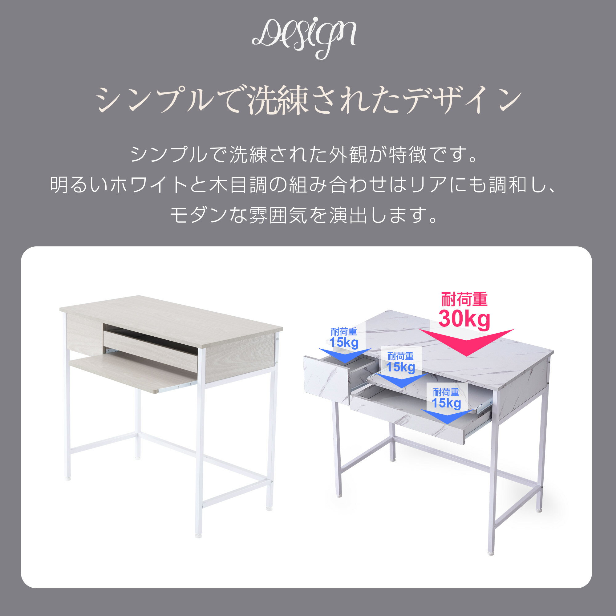 商品名 : パソコンデスク 引き出し付き 収納台 pcデスク 机 大理石柄 おしゃれ キーボード付 ミシン台 学習机 勉強机 新